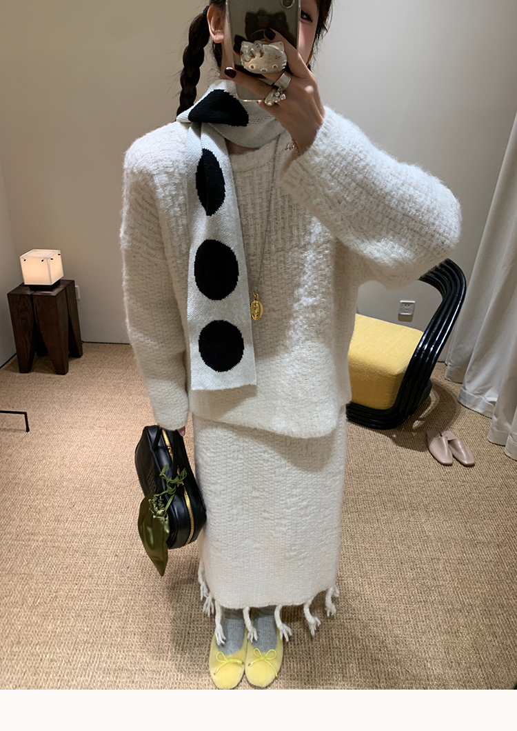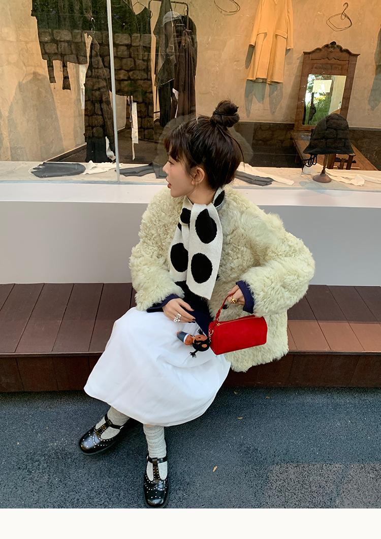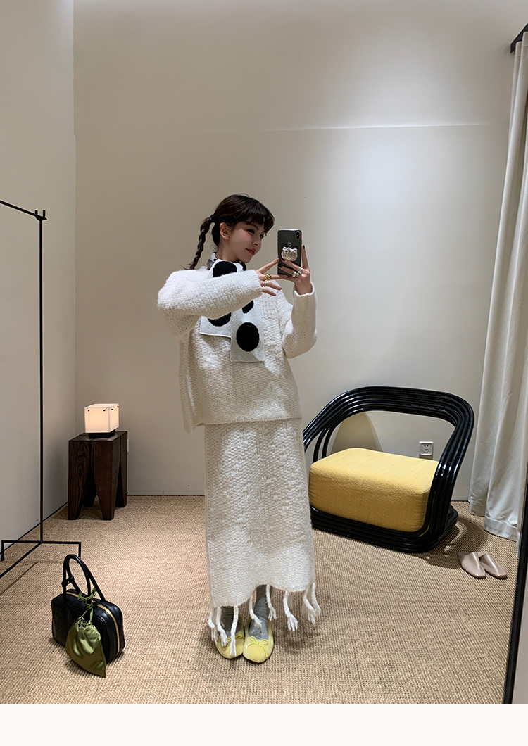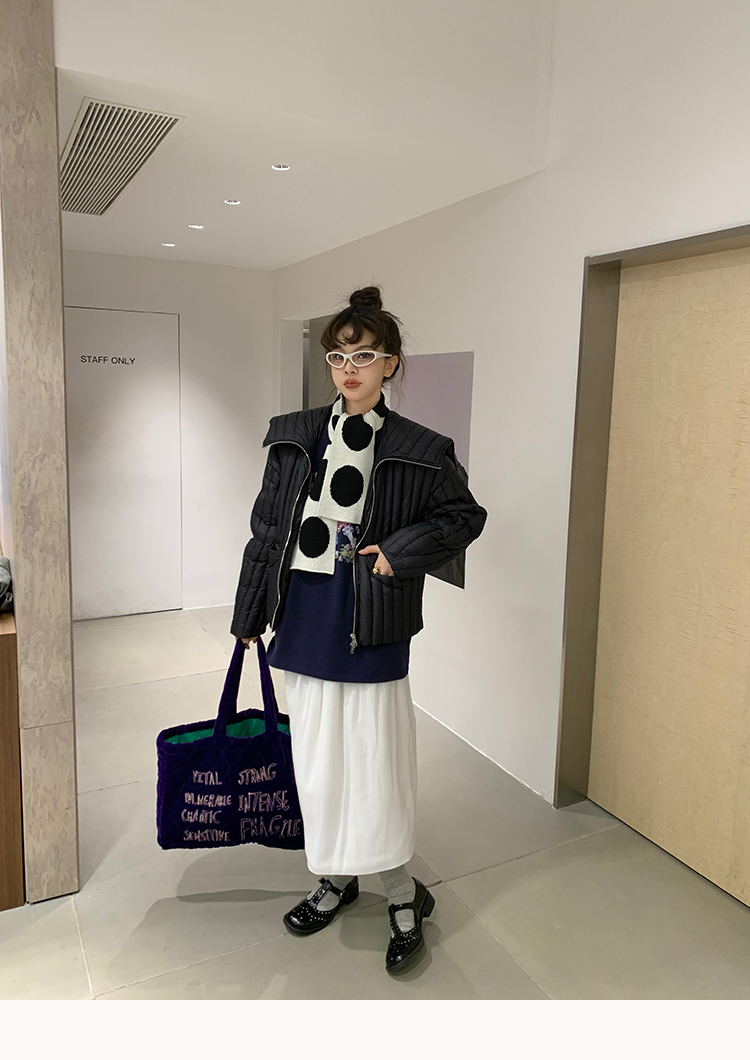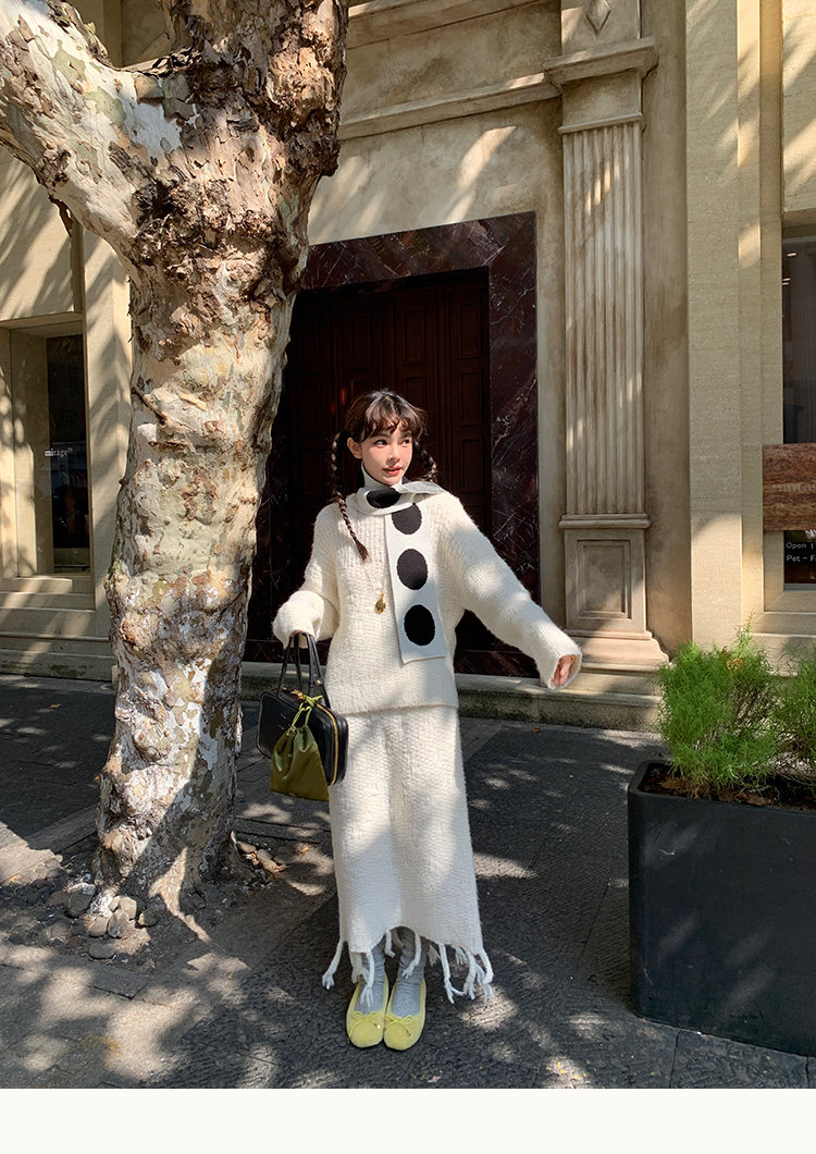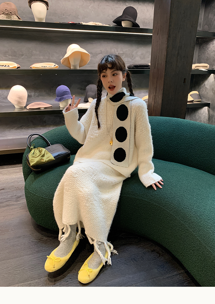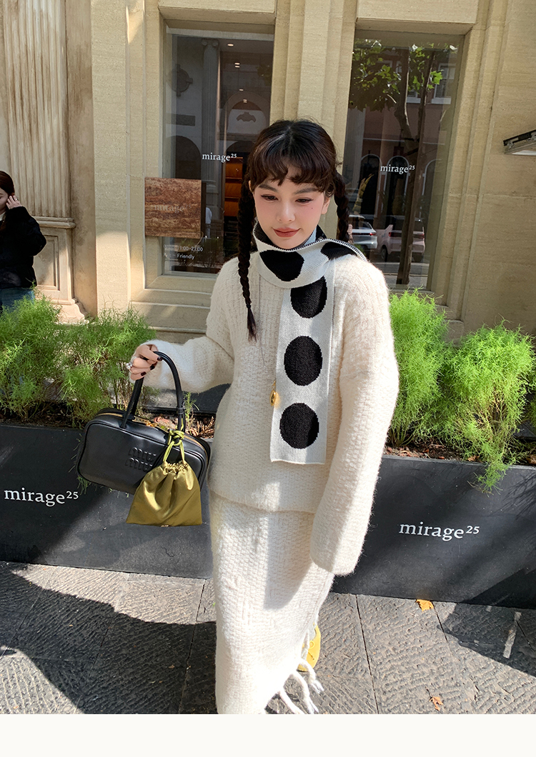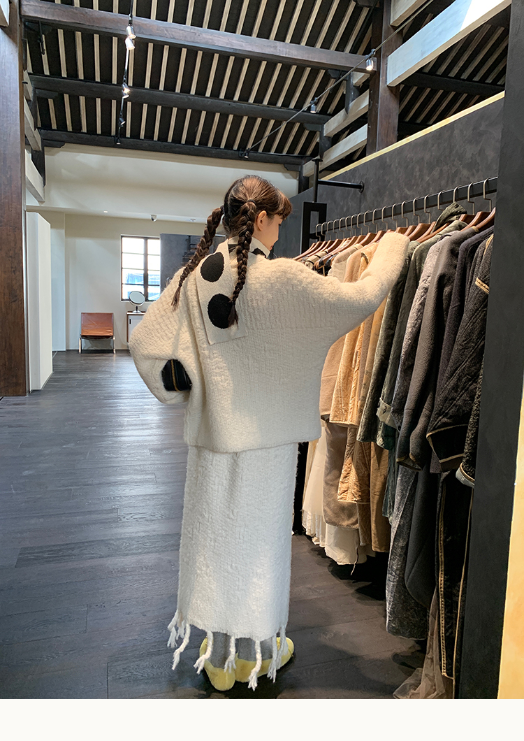 Lerouge Zhou Meimei 클래식 예술적 흑백 색상 라운드 기하학적 자카드 니트 스카프스토어 가기