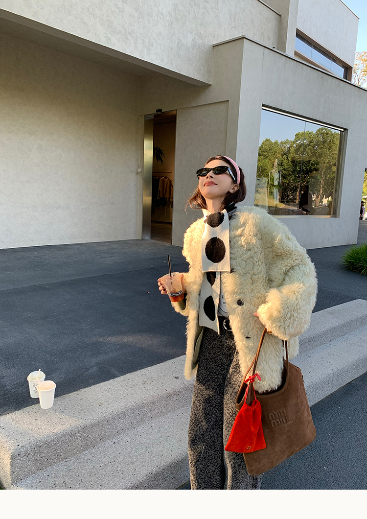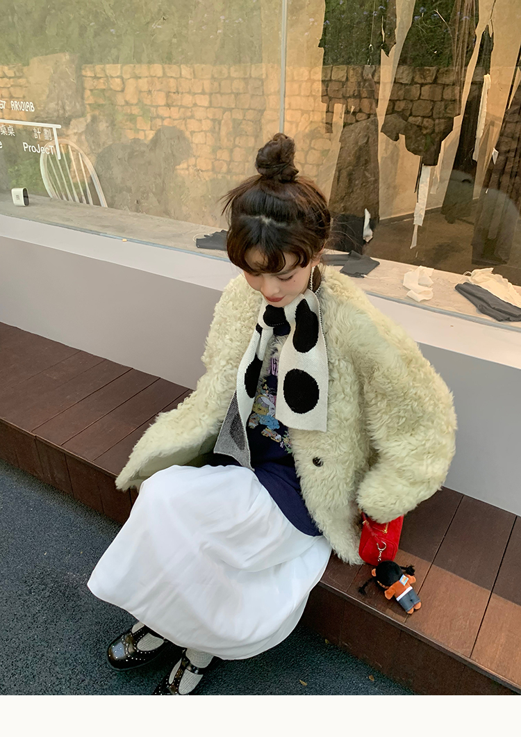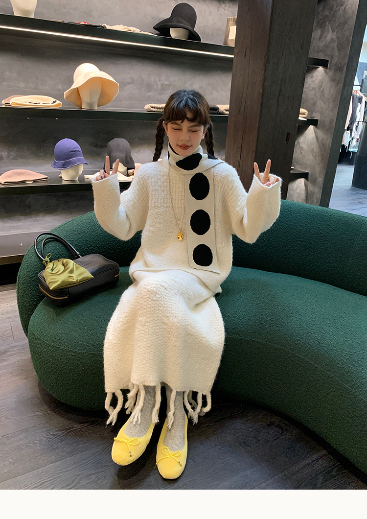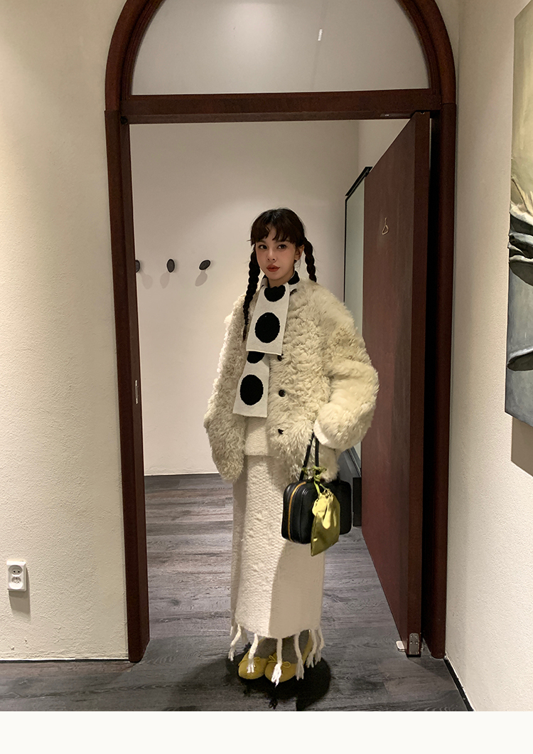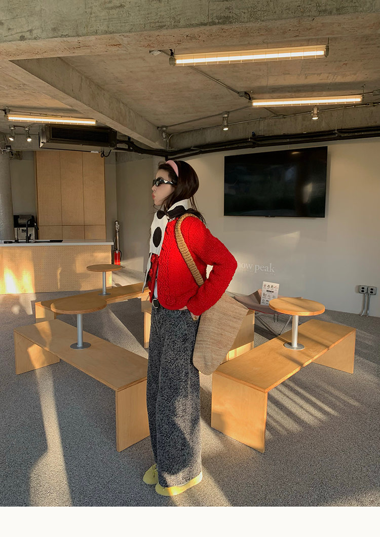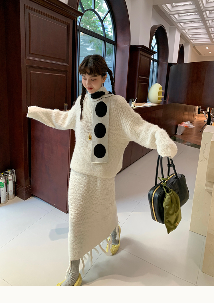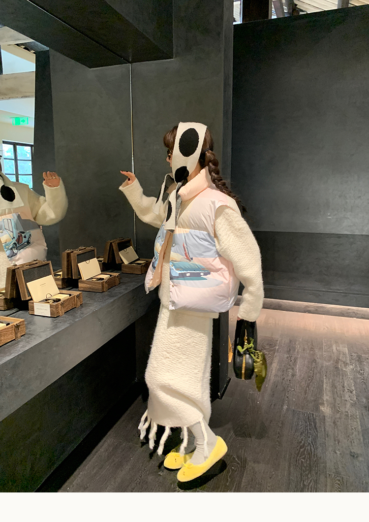 Lerouge Zhou Meimei 클래식 예술적 흑백 색상 라운드 기하학적 자카드 니트 스카프스토어 가기