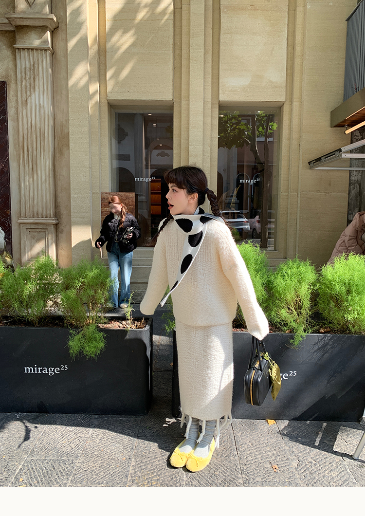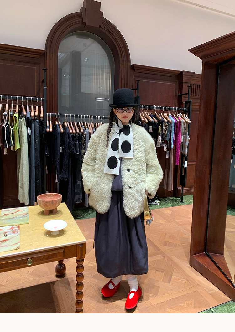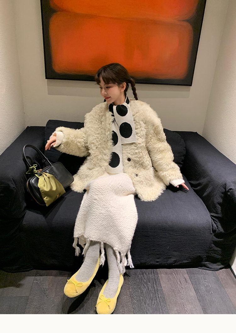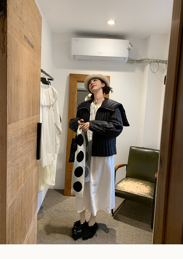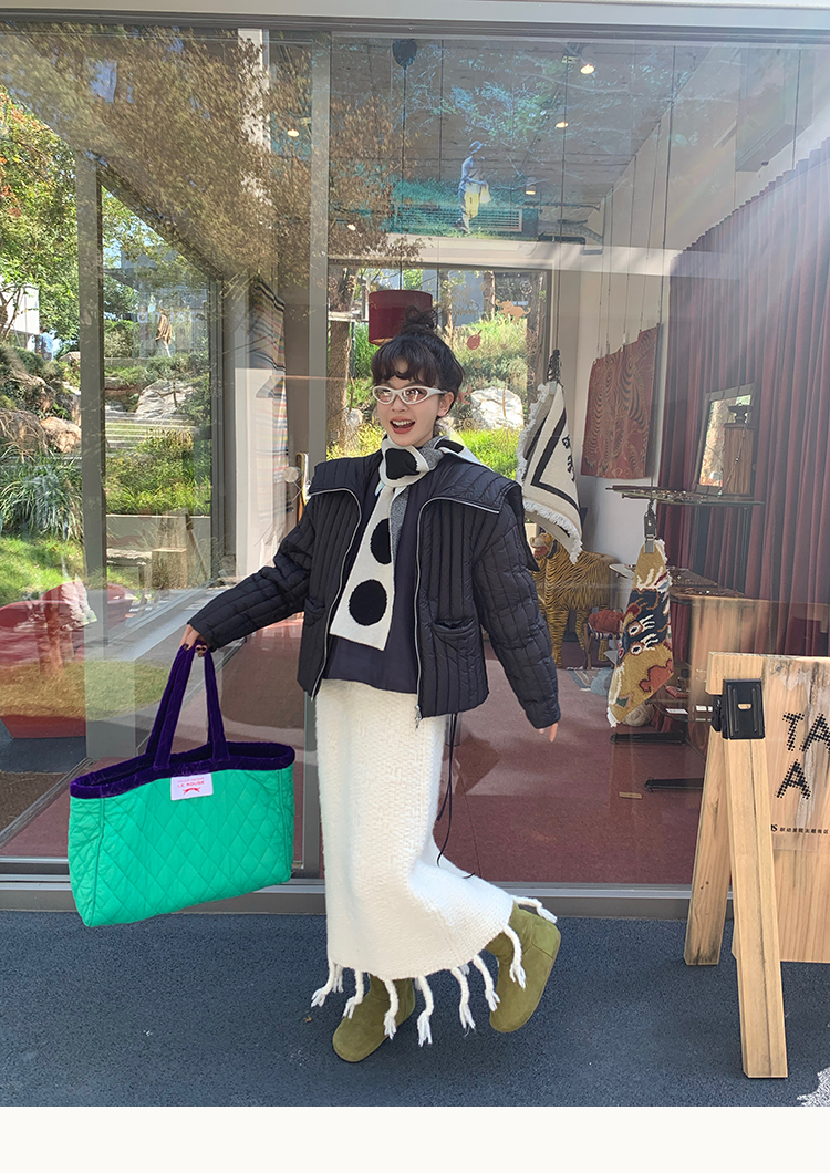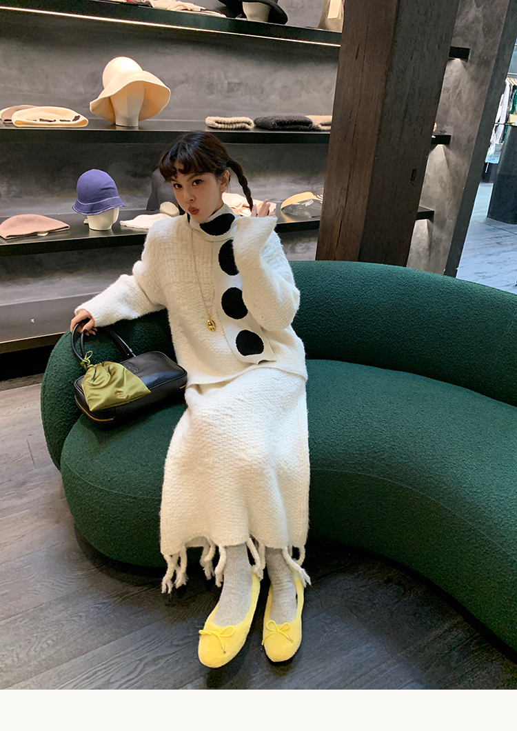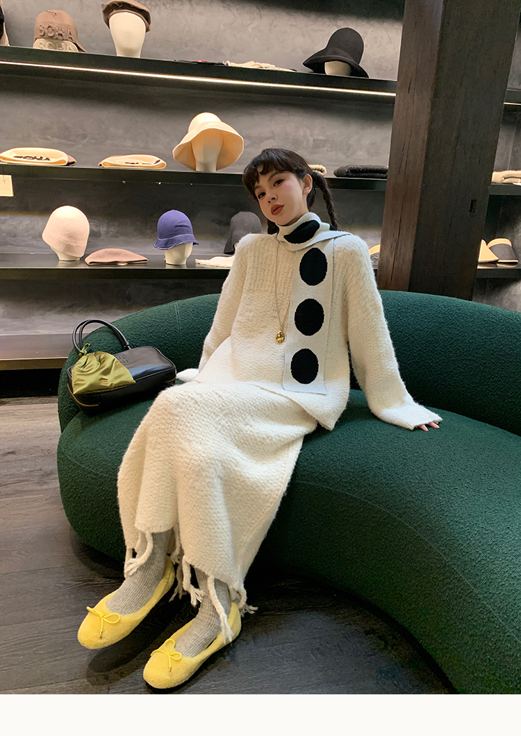 Lerouge Zhou Meimei 클래식 예술적 흑백 색상 라운드 기하학적 자카드 니트 스카프스토어 가기