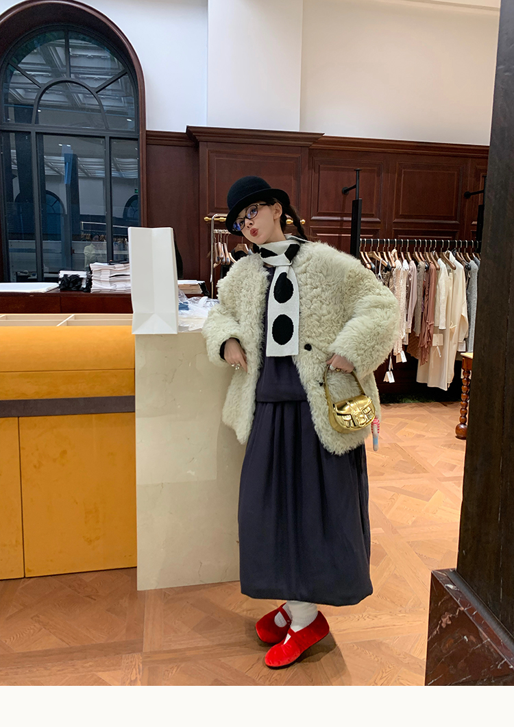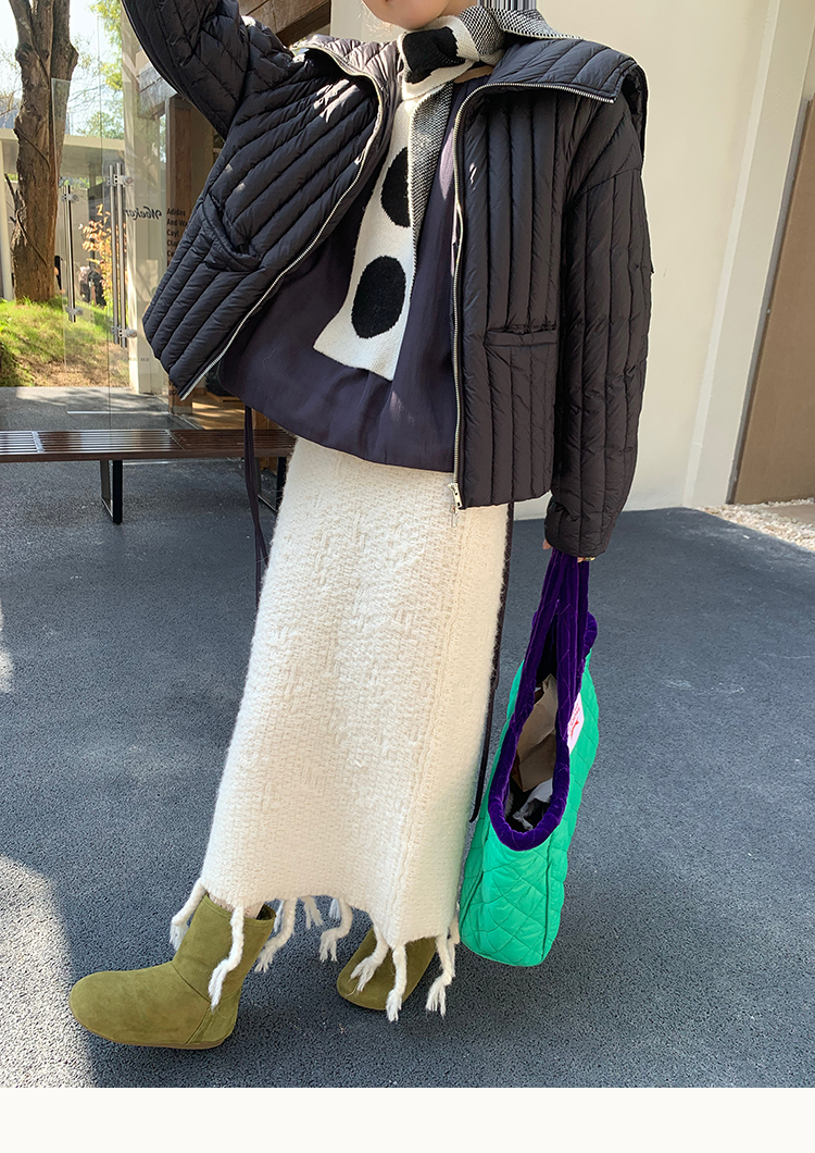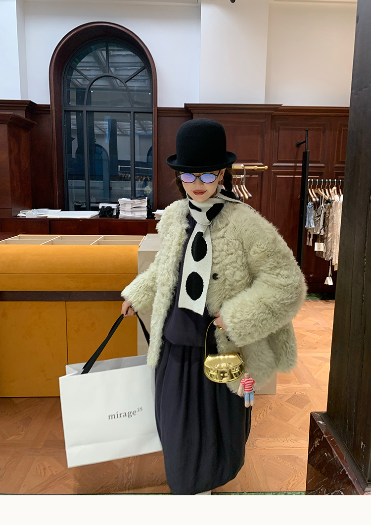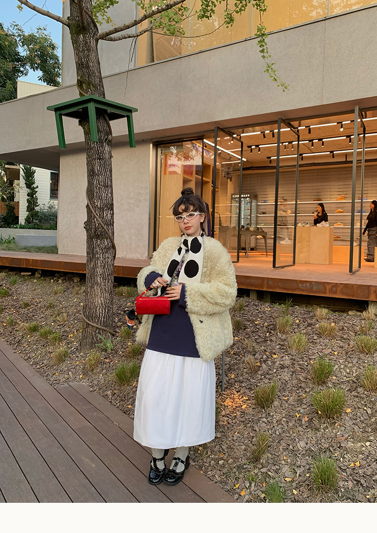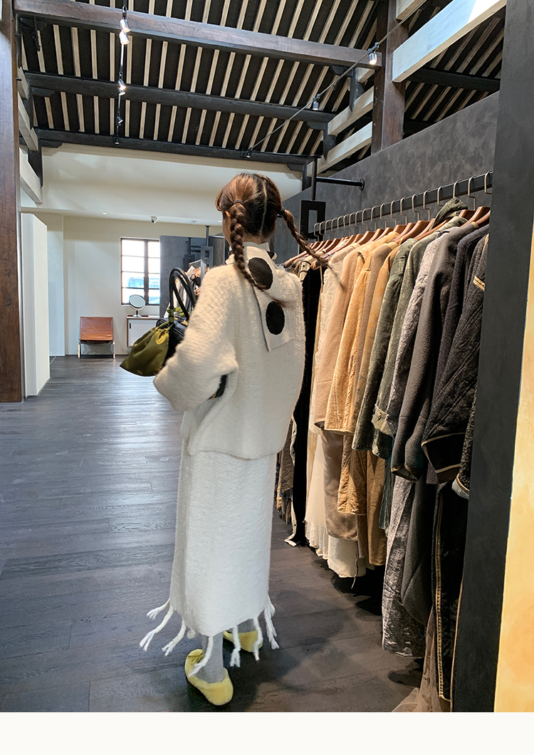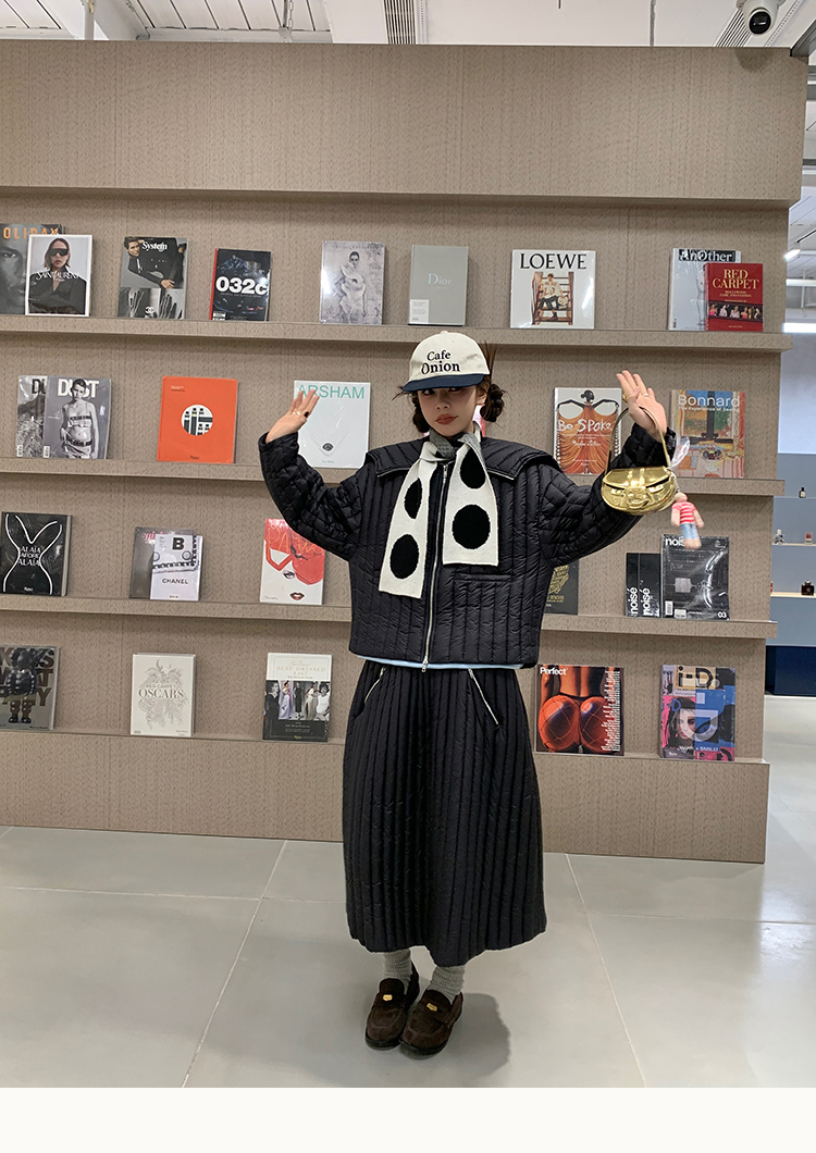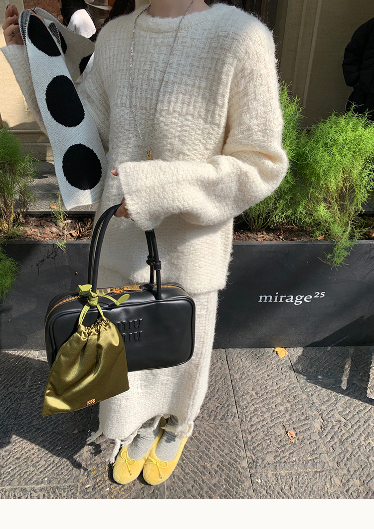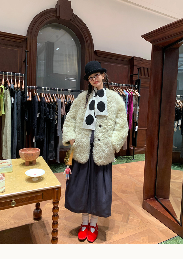 Lerouge Zhou Meimei 클래식 예술적 흑백 색상 라운드 기하학적 자카드 니트 스카프스토어 가기