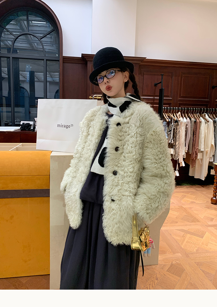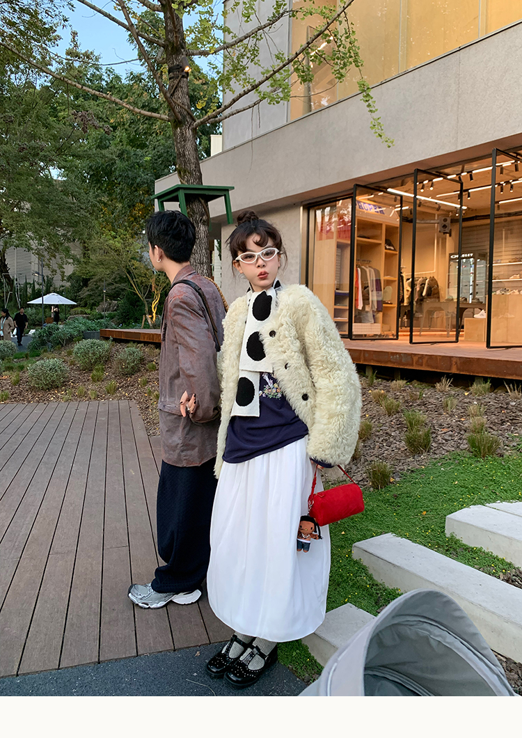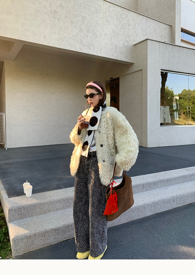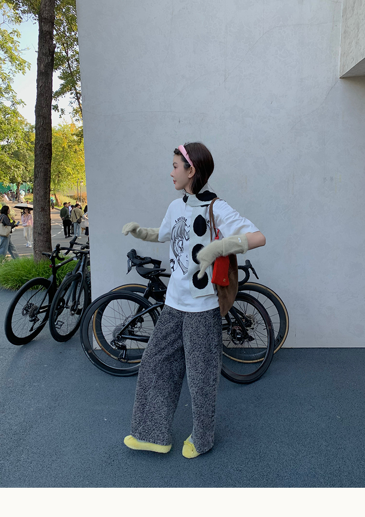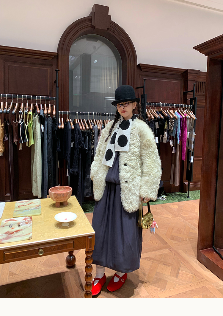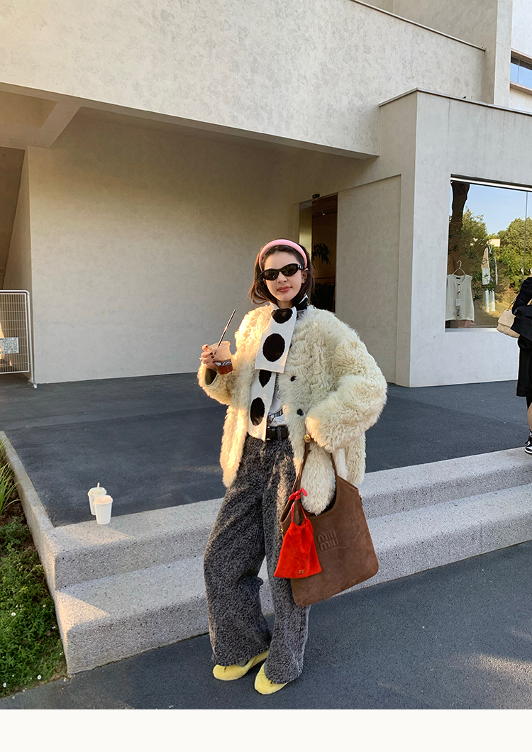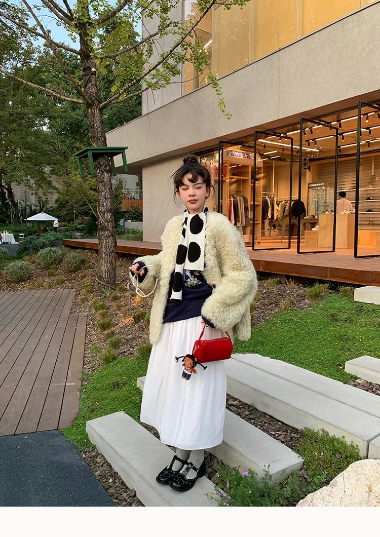 Lerouge Zhou Meimei 클래식 예술적 흑백 색상 라운드 기하학적 자카드 니트 스카프스토어 가기