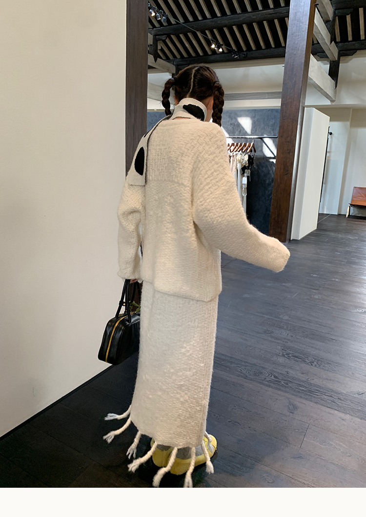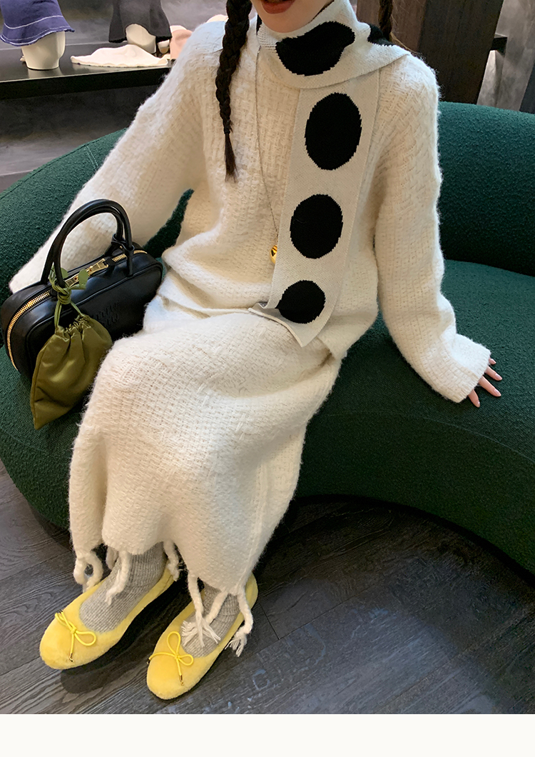 Lerouge Zhou Meimei 클래식 예술적 흑백 색상 라운드 기하학적 자카드 니트 스카프