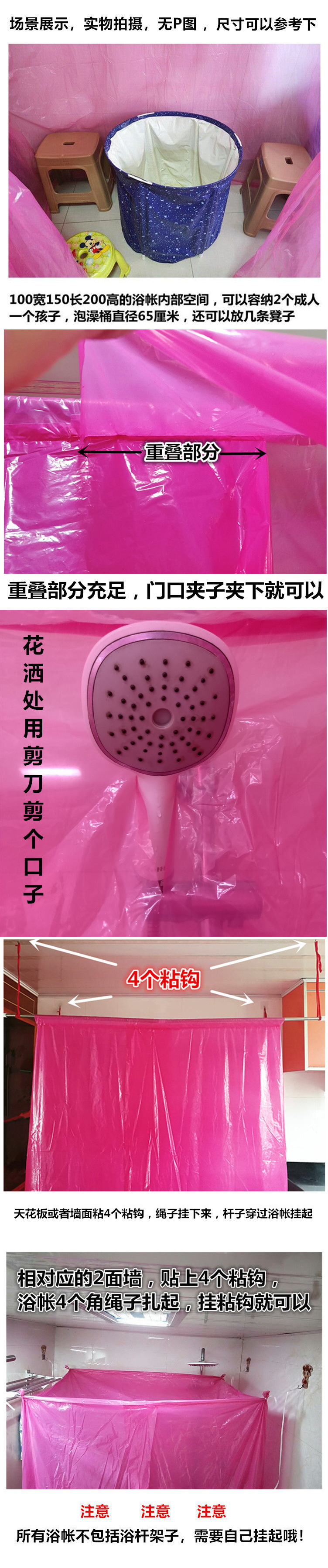 • 두꺼운 버전 폭 80cm 길이 120cm 높이 200cm + 끈끈한 고리 4개