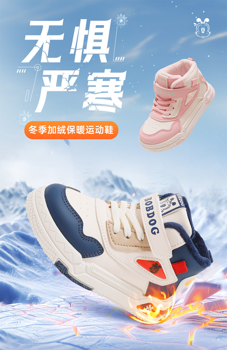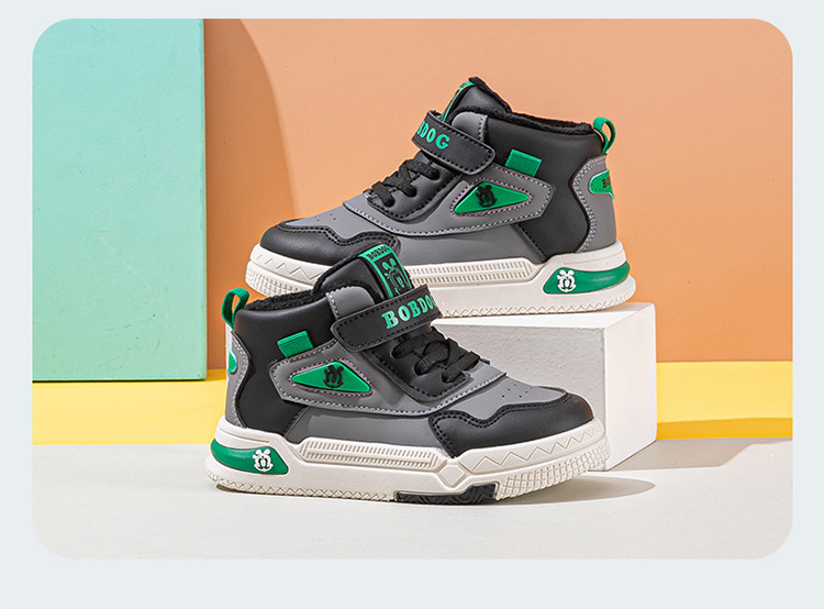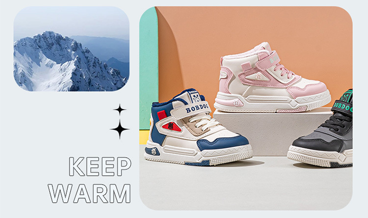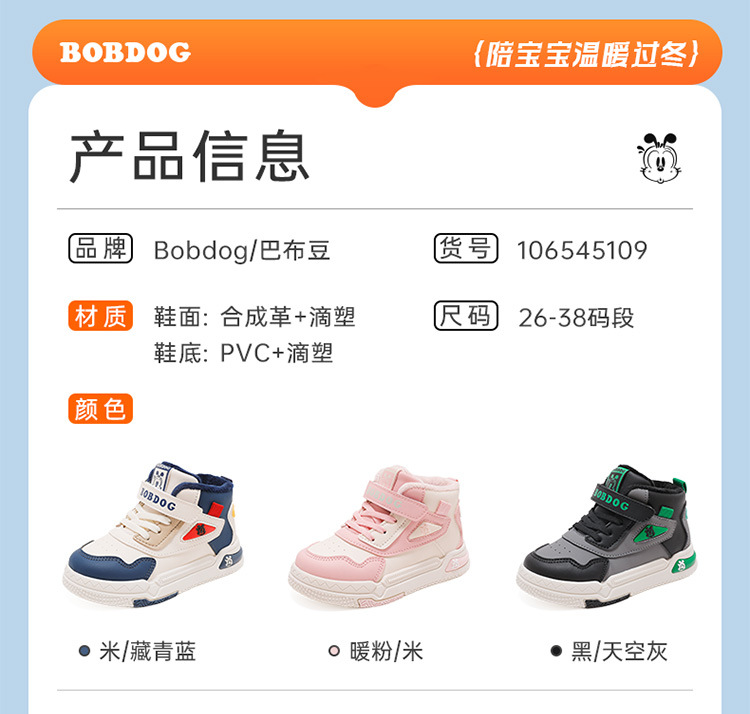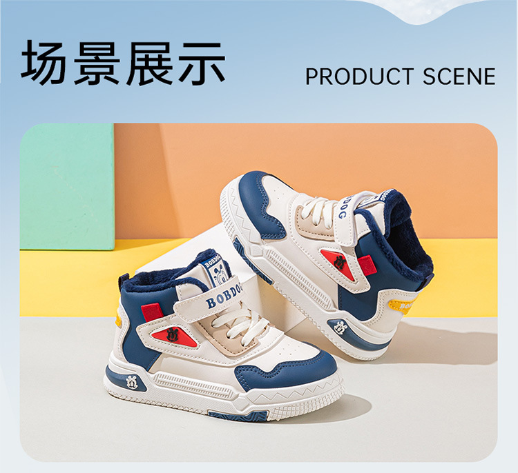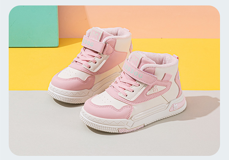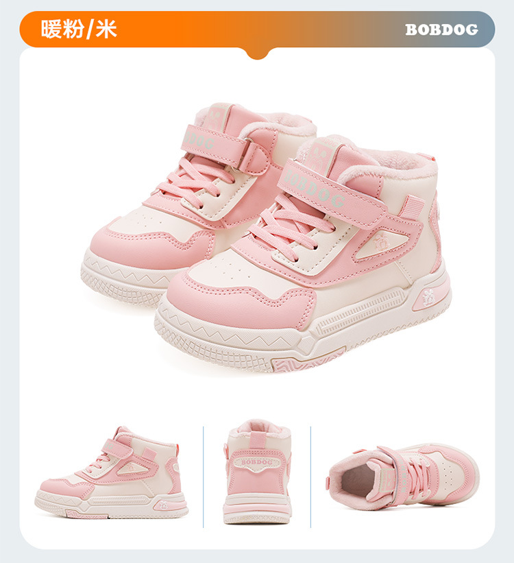 바부 콩 여성 신발 2024 가을과 겨울 어린이 운동화 2 면 따뜻한 중대형 어린이 운동화 소년면 신발
