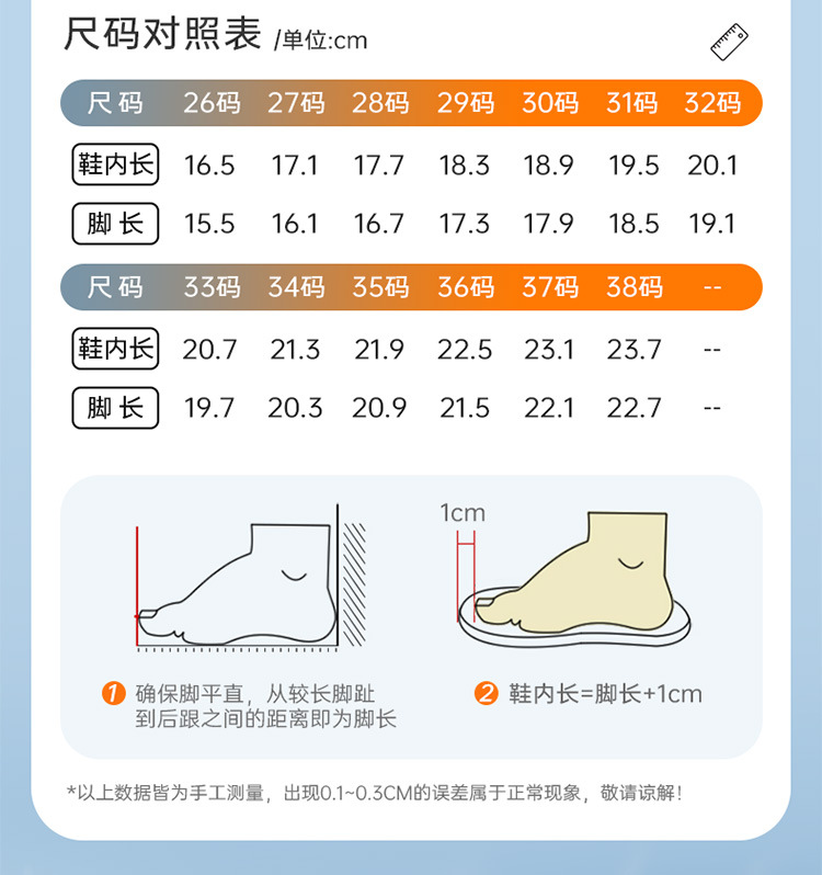• 사이즈 33 신발의 내부 길이는 20.7cm입니다.