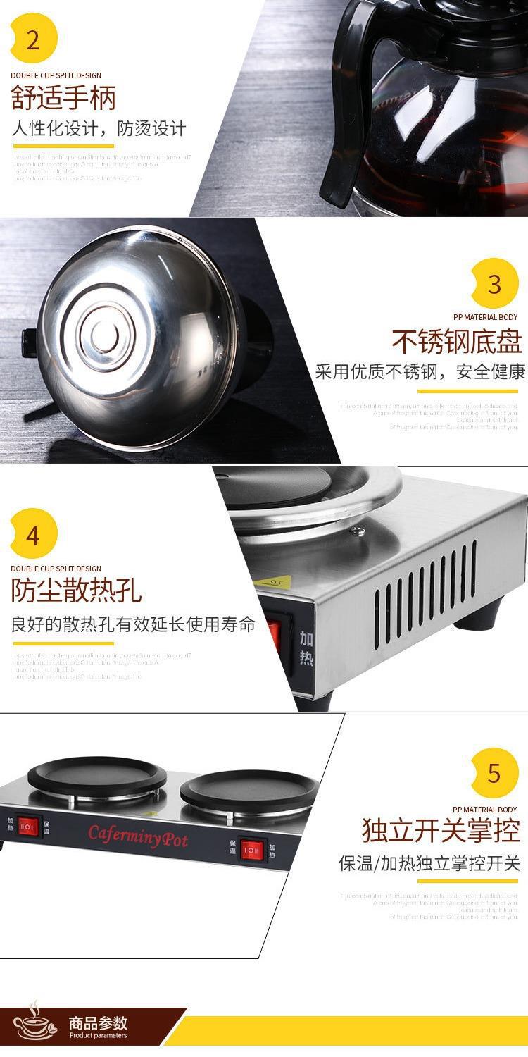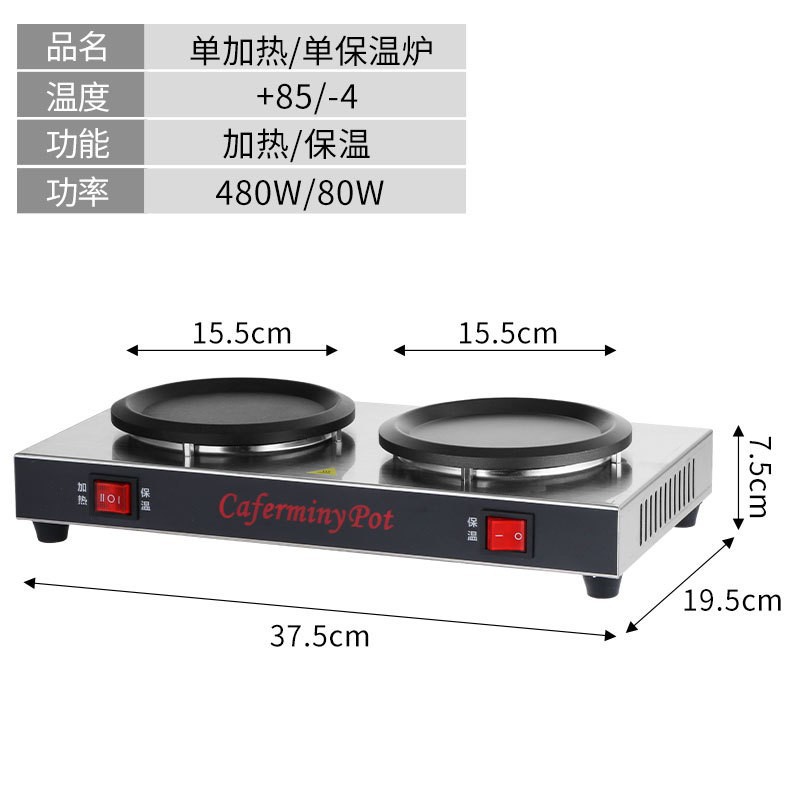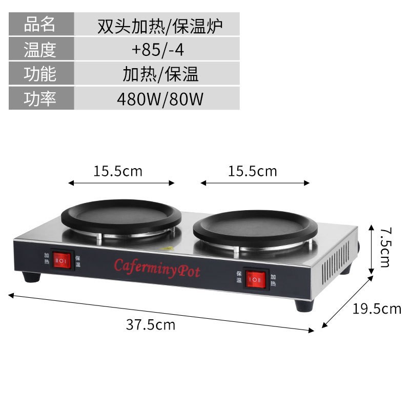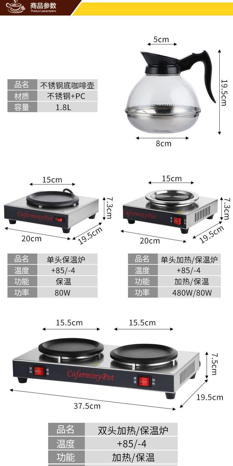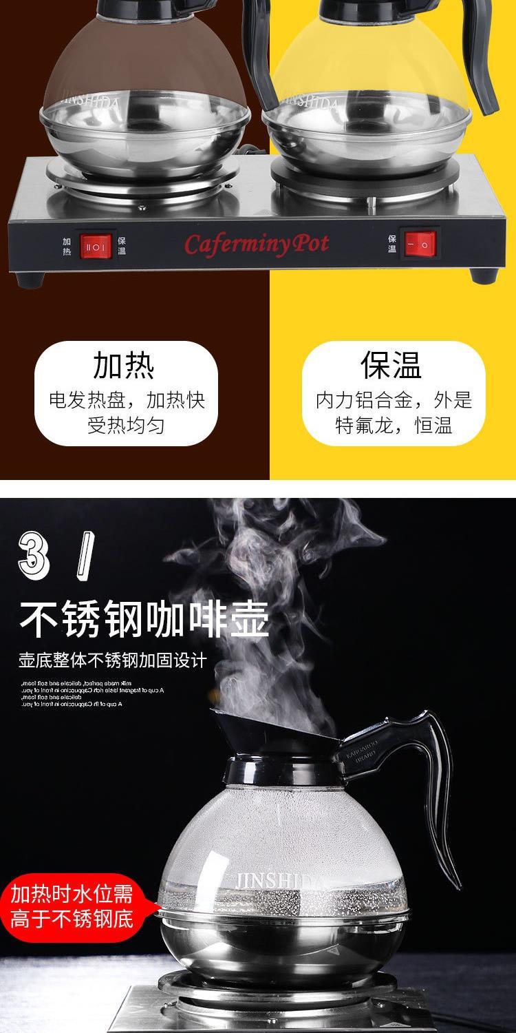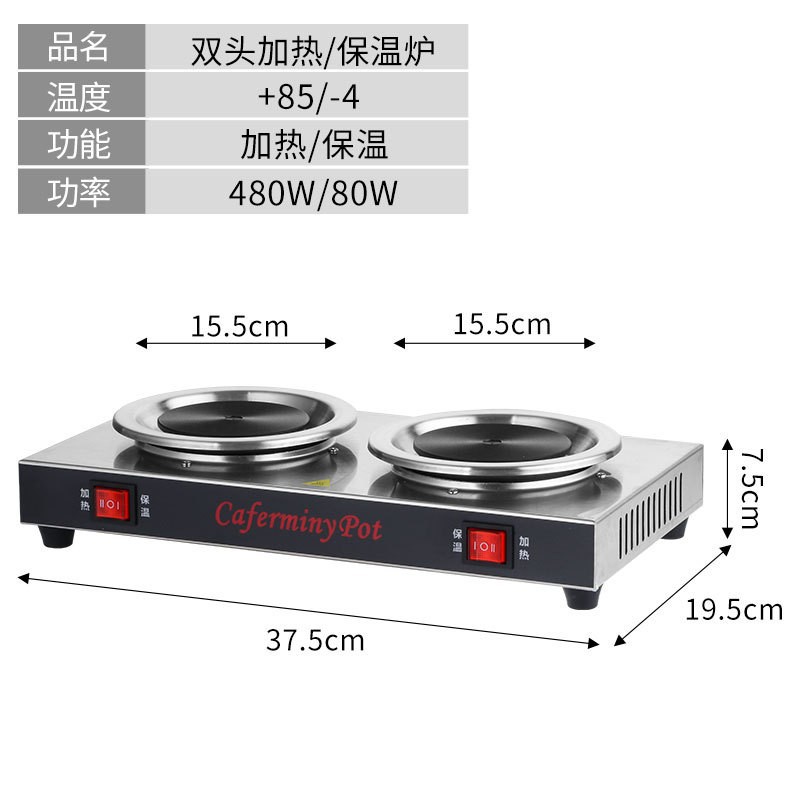 스테인레스 스틸 더블 헤드 브루 커피 오븐 우유 차 온도 조절기 유리 냄비 난방 오븐 미국 커피 가열 오븐