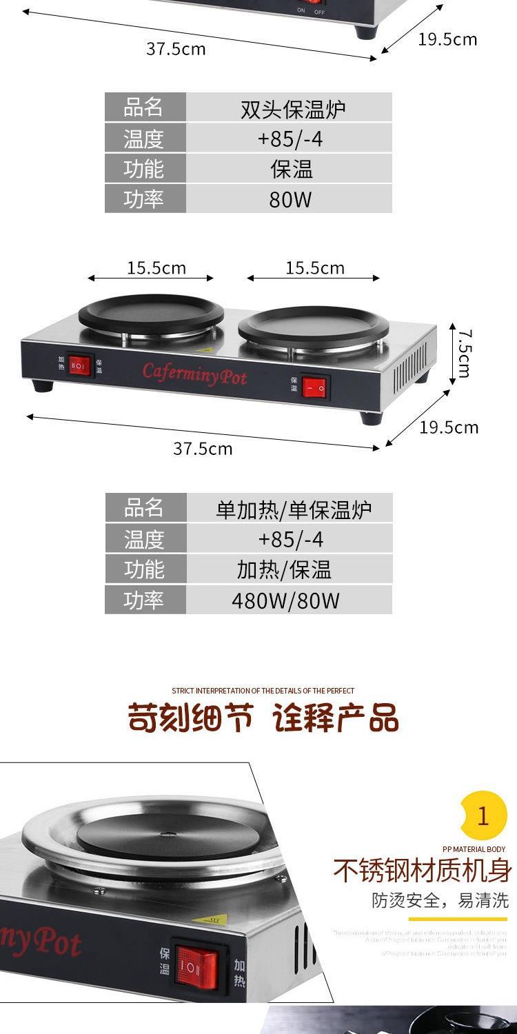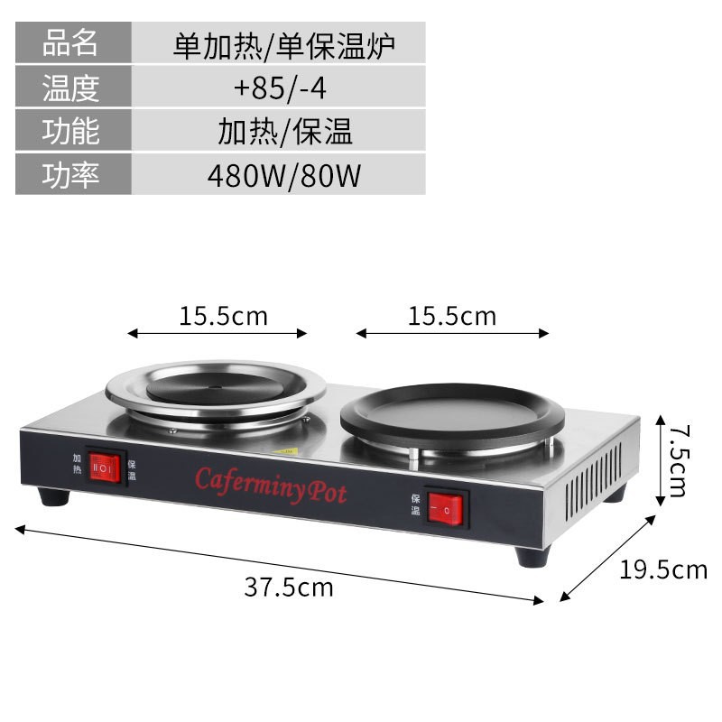스테인레스 스틸 더블 헤드 브루 커피 오븐 우유 차 온도 조절기 유리 냄비 난방 오븐 미국 커피 가열 오븐스토어 가기