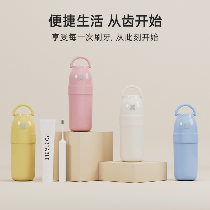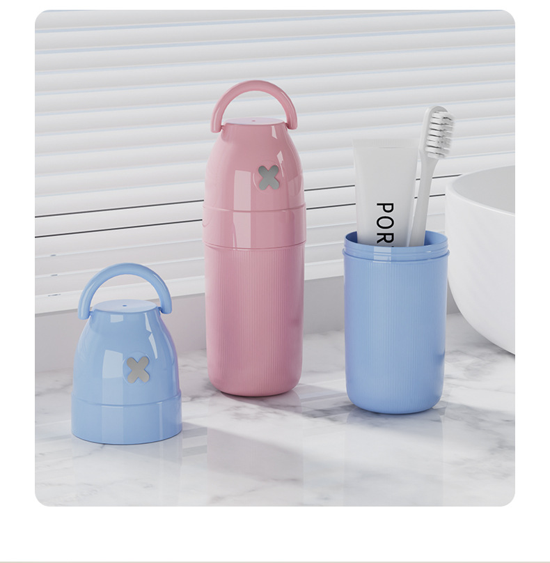 휴대용 여행 칫솔 상자 손잡이 뚜껑 치약 캔디 칫솔 보관 상자 마우스 워시 컵이있는 세척 컵