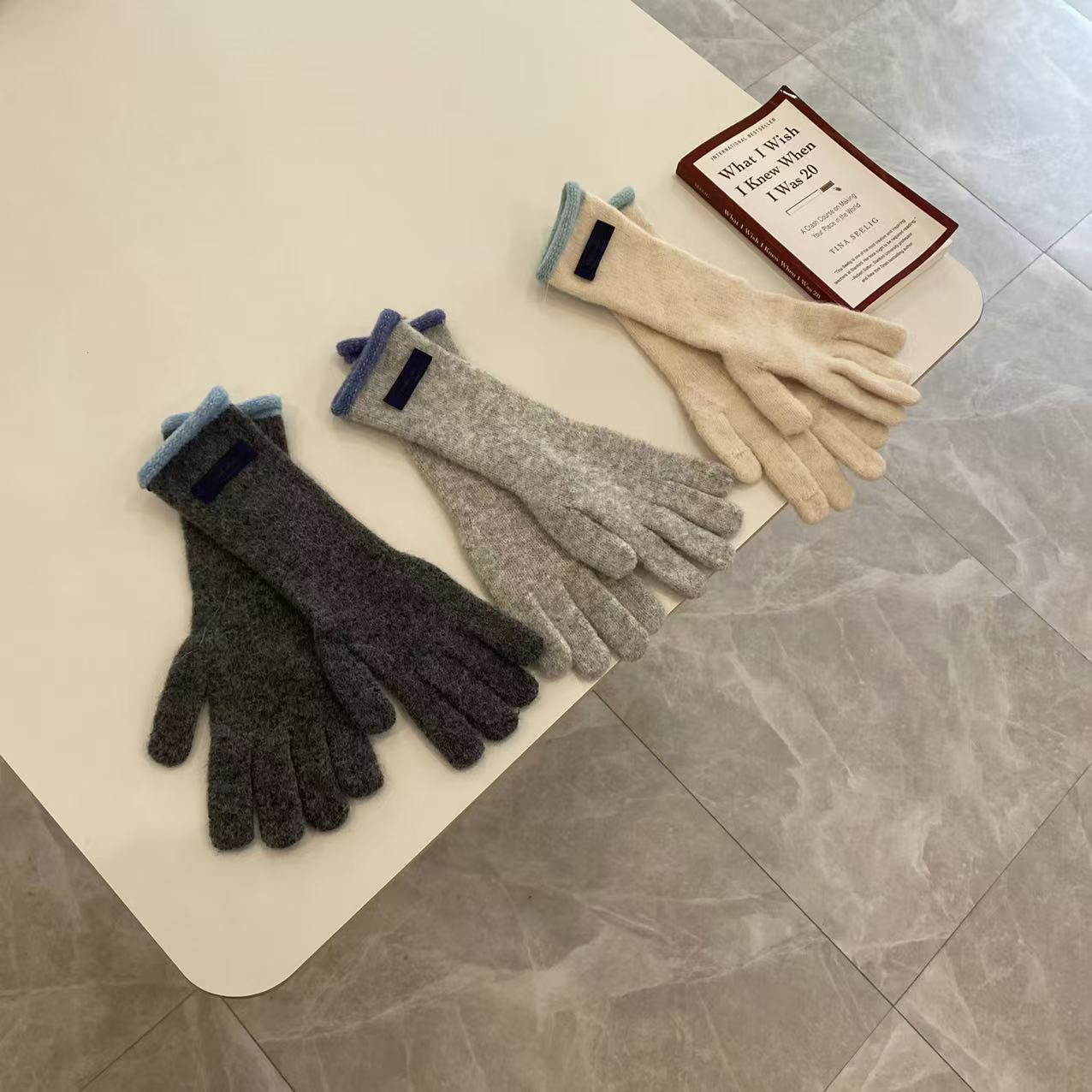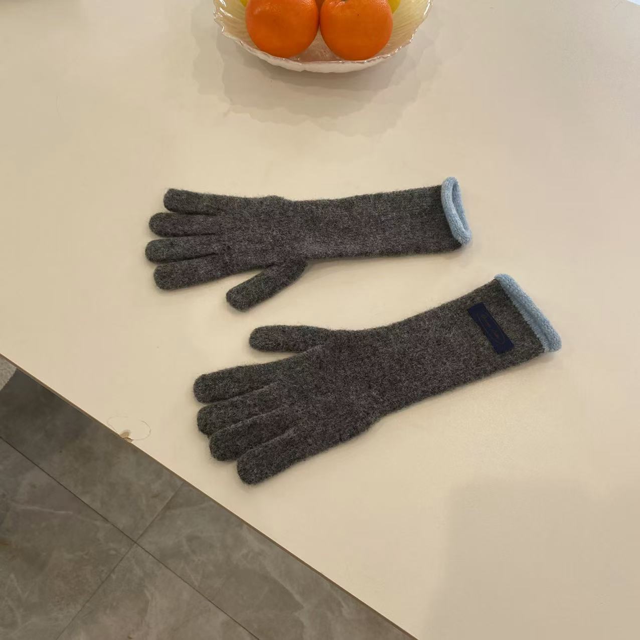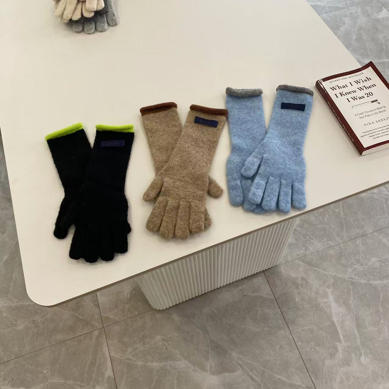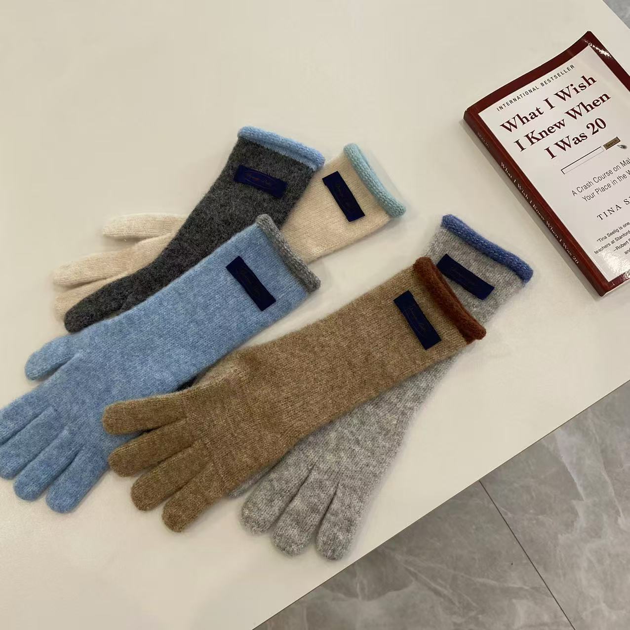 2024 가을과 겨울 따뜻한 대조 컬러 긴 터치 스크린 손가락없는 장갑 자전거 손가락 커플 방풍스토어 가기