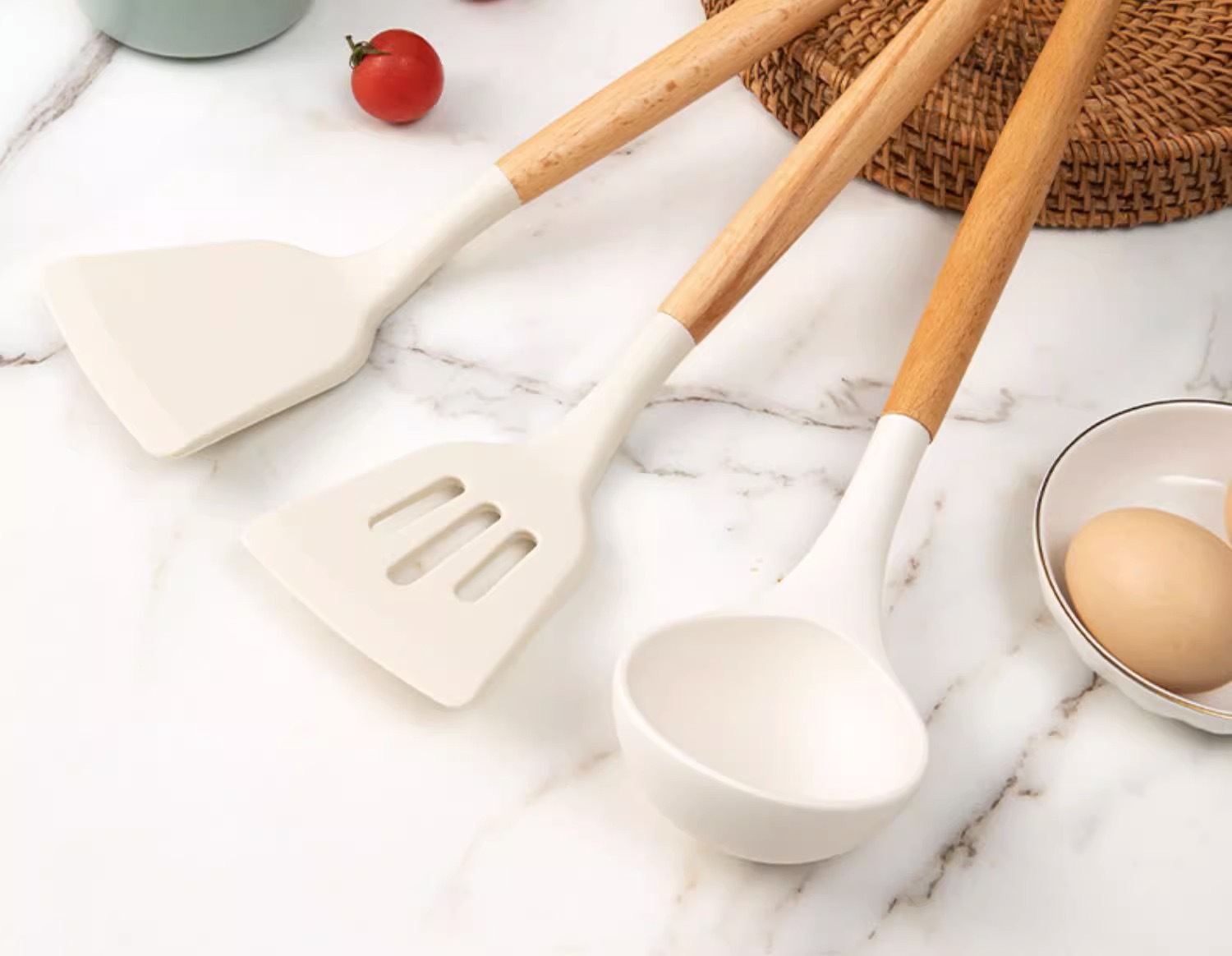 도매 실리콘 주걱, 고온 방지 및 화상 방지 주걱 세트, 가정용 요리 주걱, 주방 주걱, 수프 스푼, 주방 용품스토어 가기