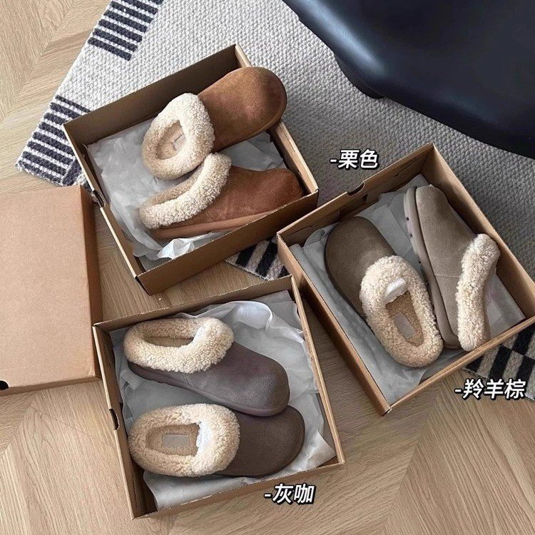 스노우 부츠 여성 2024 년 새 겨울 여성 신발 슬립 인 버켄 신발 여성용 바오 터우 마오 신발 반 슬리퍼 면 슬리퍼스토어 가기