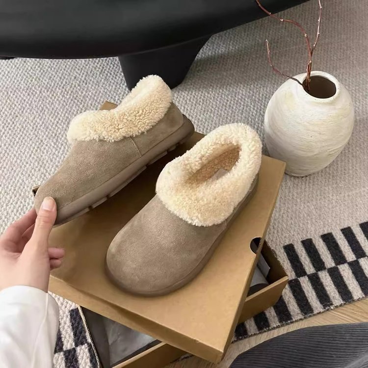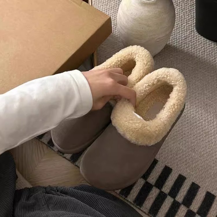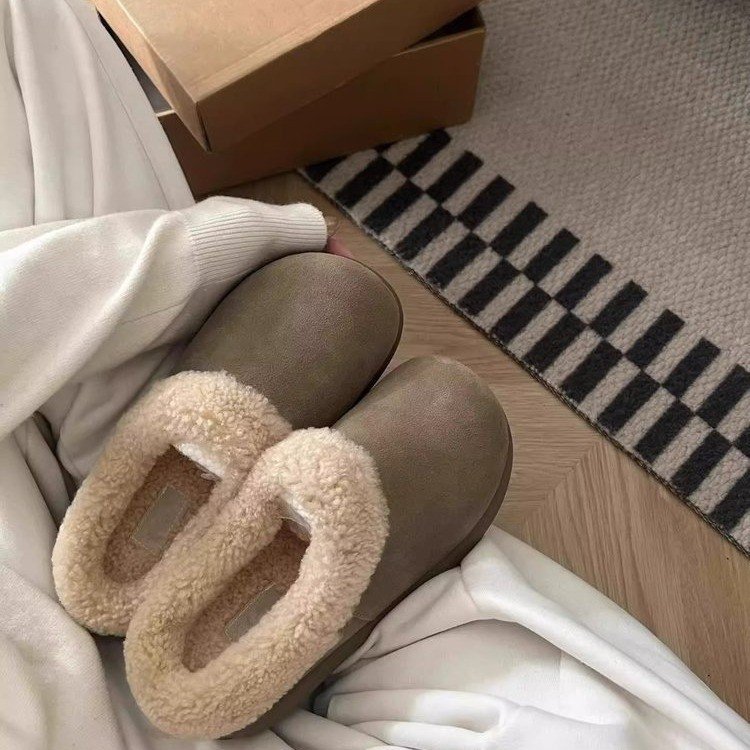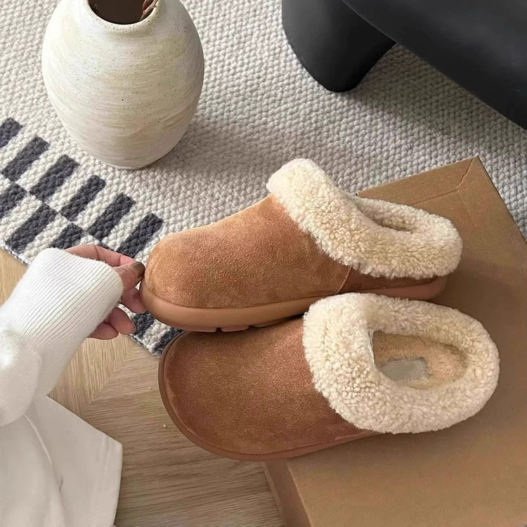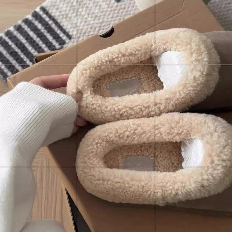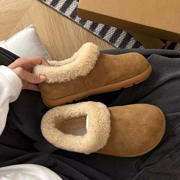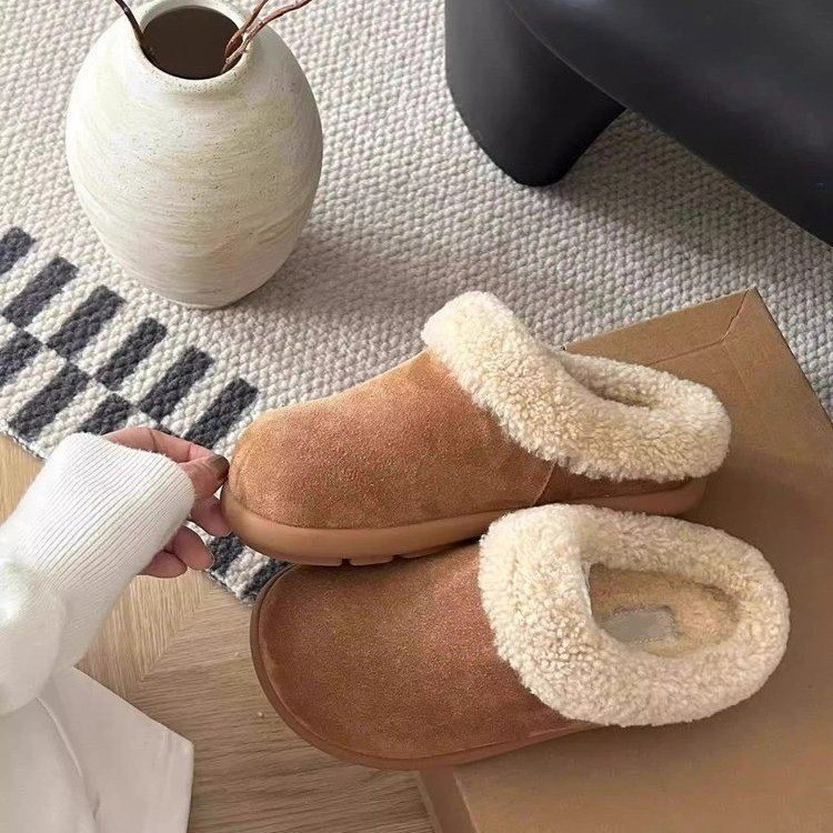 스노우 부츠 여성 2024 년 새 겨울 여성 신발 슬립 인 버켄 신발 여성용 바오 터우 마오 신발 반 슬리퍼 면 슬리퍼