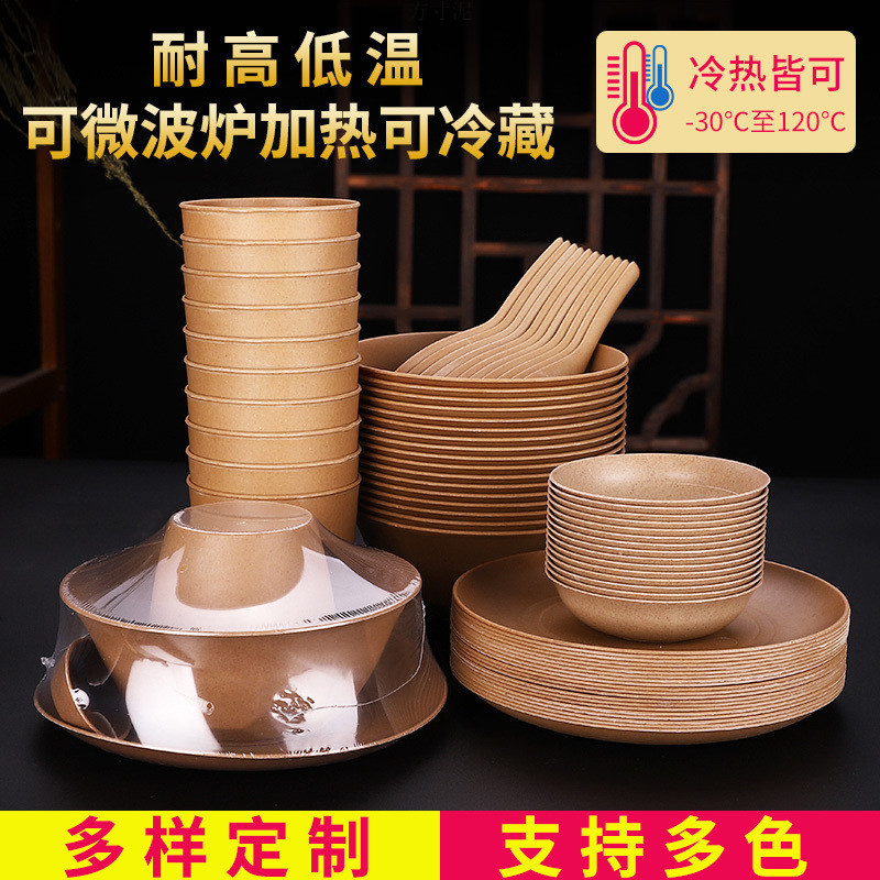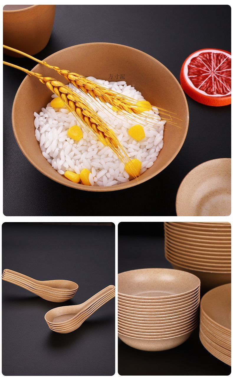 일회용 쌀 껍질 식기 세트 컵 그릇 젓가락 접시 숟가락 조합 두꺼운 독립 팩 4 피스 세트 하드 호텔 사용