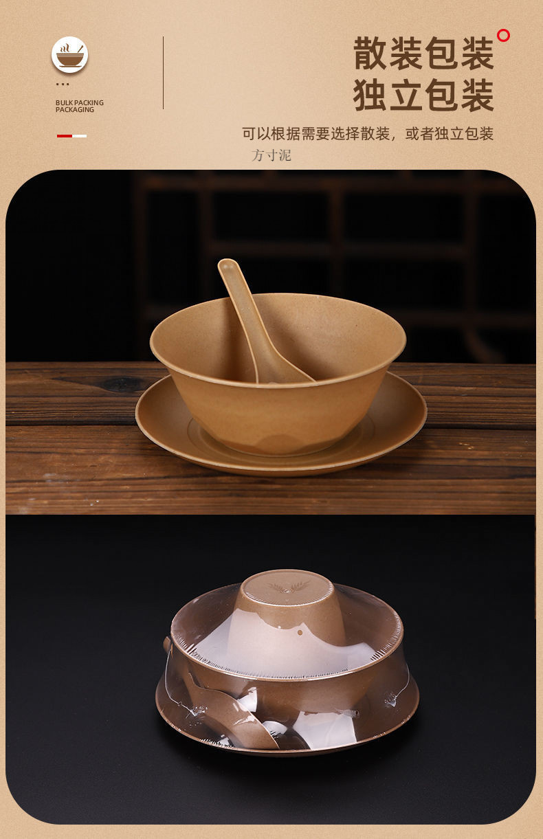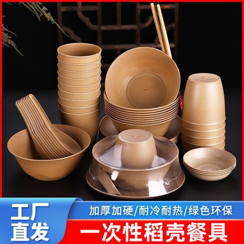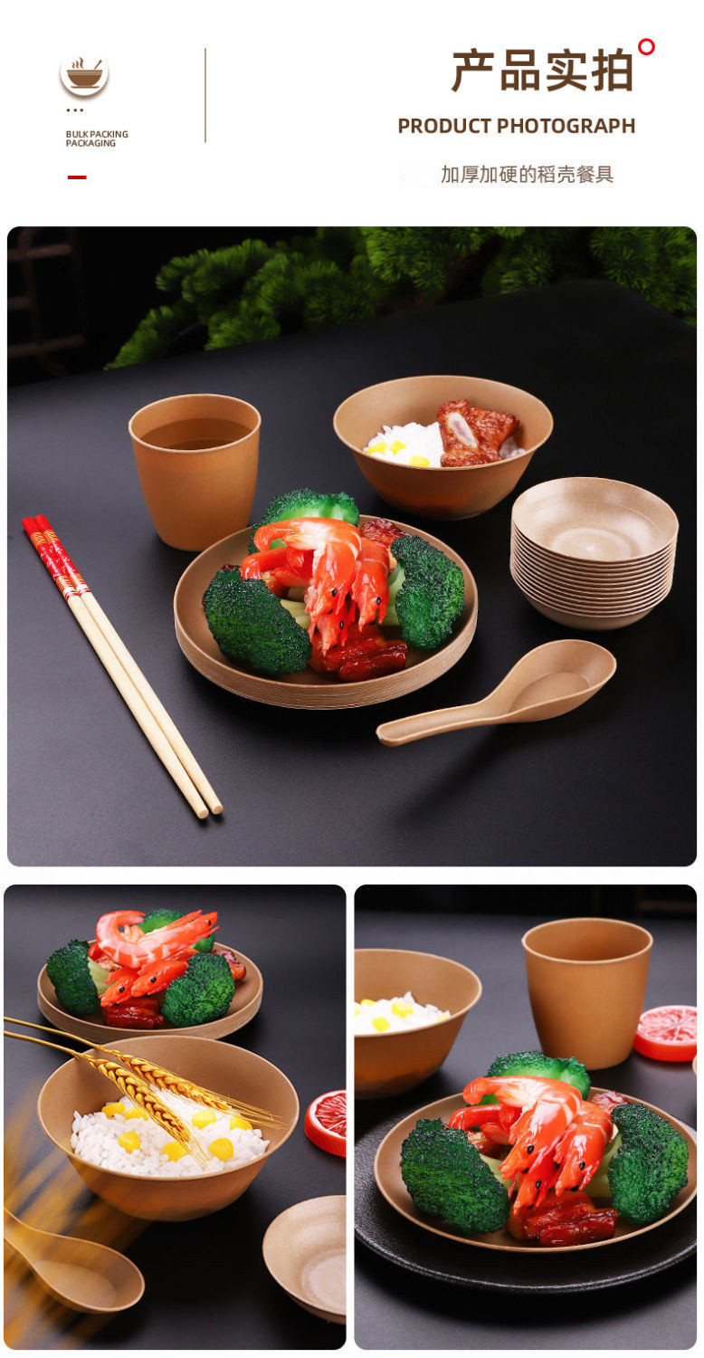 일회용 쌀 껍질 식기 세트 컵 그릇 젓가락 접시 숟가락 조합 두꺼운 독립 팩 4 피스 세트 하드 호텔 사용스토어 가기