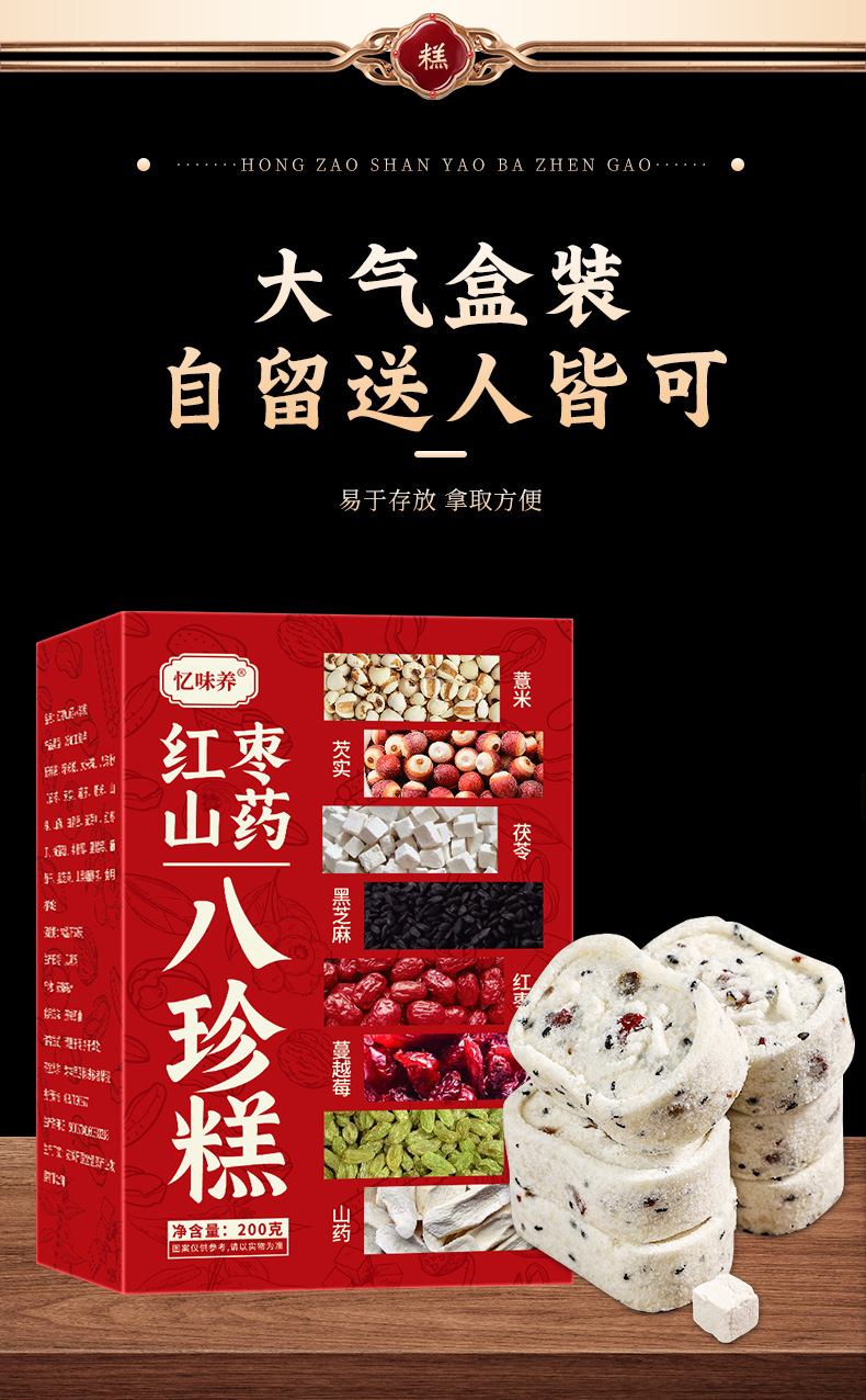 Jujube yam bazhen 케이크 상자 200 g 스낵 케이크 도매 제조 업체 공급 견과류 bazhen 케이크 euryale 케이크스토어 가기