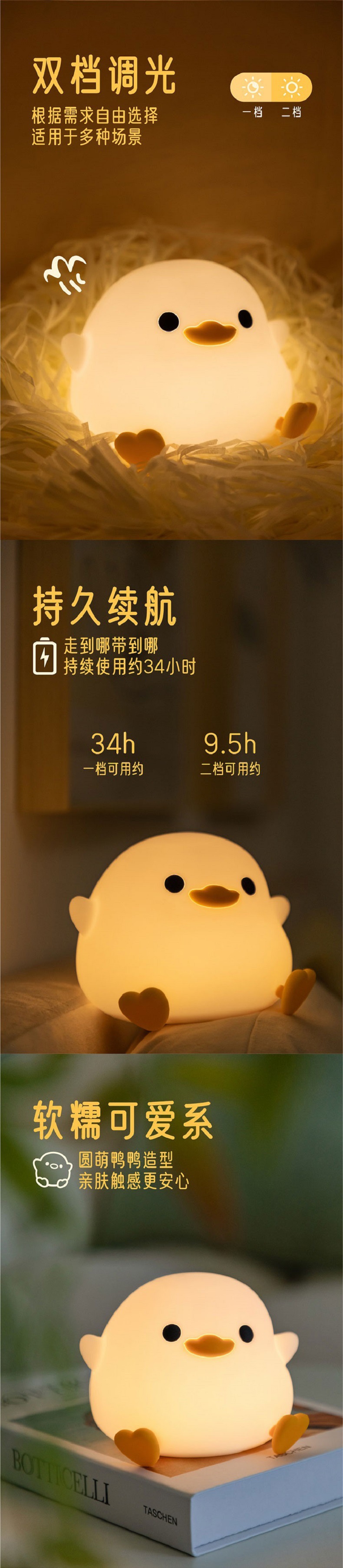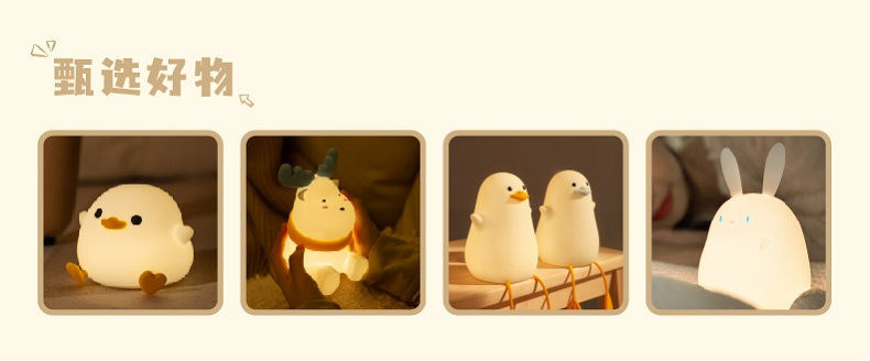 Doudou 오리 국경 간 실리콘 야간 분위기 램프 침실 침대 옆 램프 USB 충전 수면 박수 램프 유도 램프