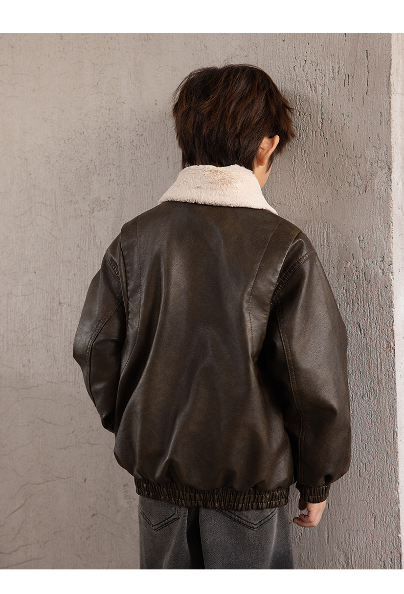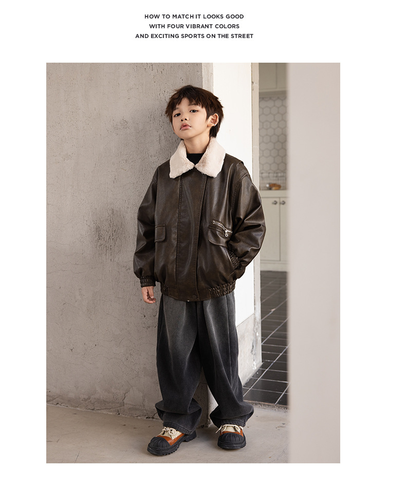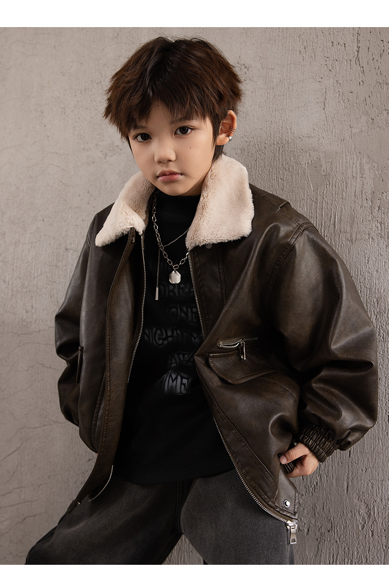 소년 가을, 겨울 벨벳 가죽 자켓 2025 새로운 스타일 소년과 어린이 겨울 두꺼운 누비 가죽 자켓스토어 가기