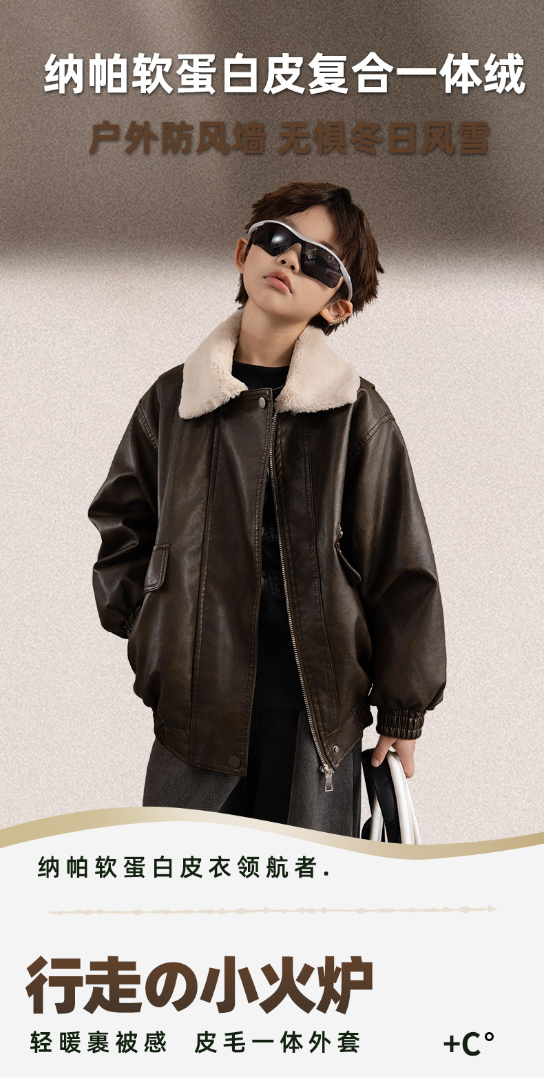 소년 가을, 겨울 벨벳 가죽 자켓 2025 새로운 스타일 소년과 어린이 겨울 두꺼운 누비 가죽 자켓