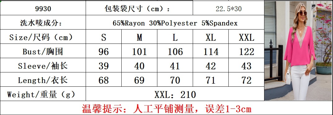 아마존 유럽과 미국 국경 대외 무역 2025 봄과 여름 새로운 단색 V 넥 소매 느슨한 쉬폰 셔츠 여성용 탑