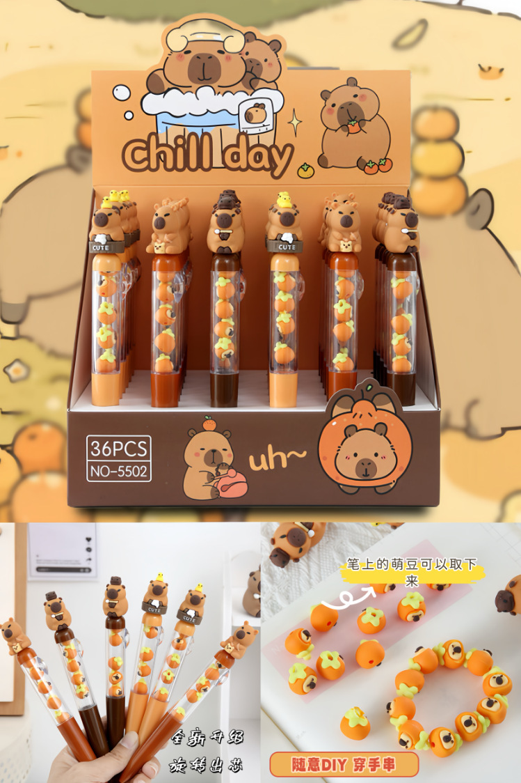 카피발라 젤 펜 스택업 귀여운 펜 수달 모양 연습용 펜 속건성 검정펜 학생 문구 도매