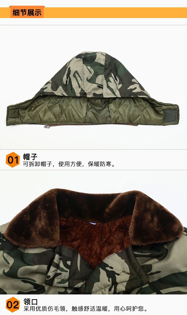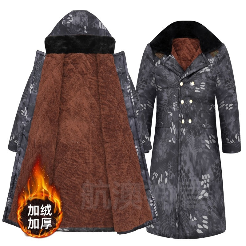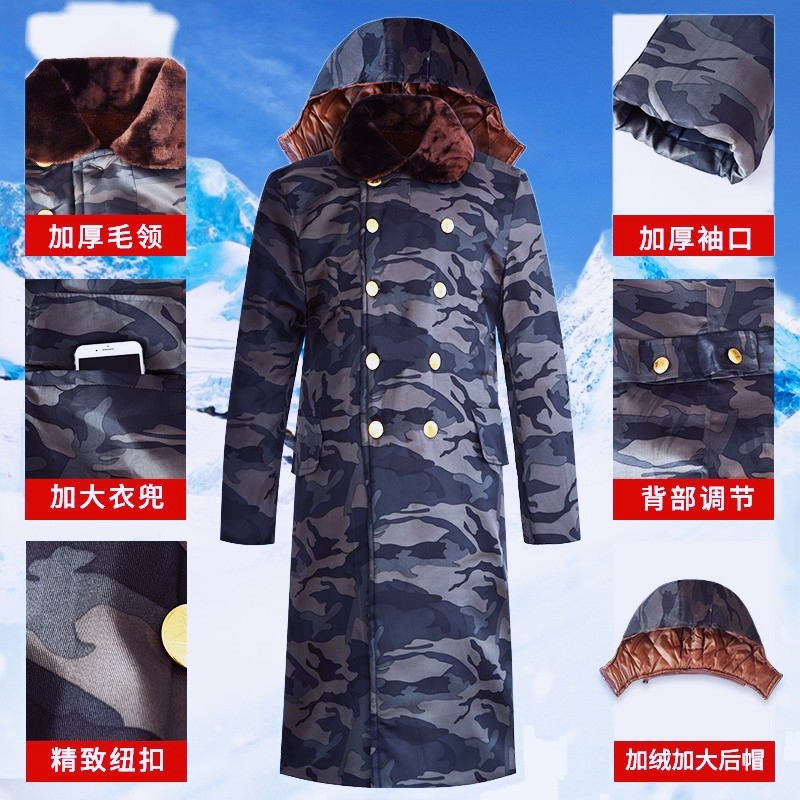겨울 코튼 코트 남성 카키 긴 기모 두꺼운 위장 코튼 콜드 스토리지 콜드 보호 의류 노동 보호 작업 면 코트