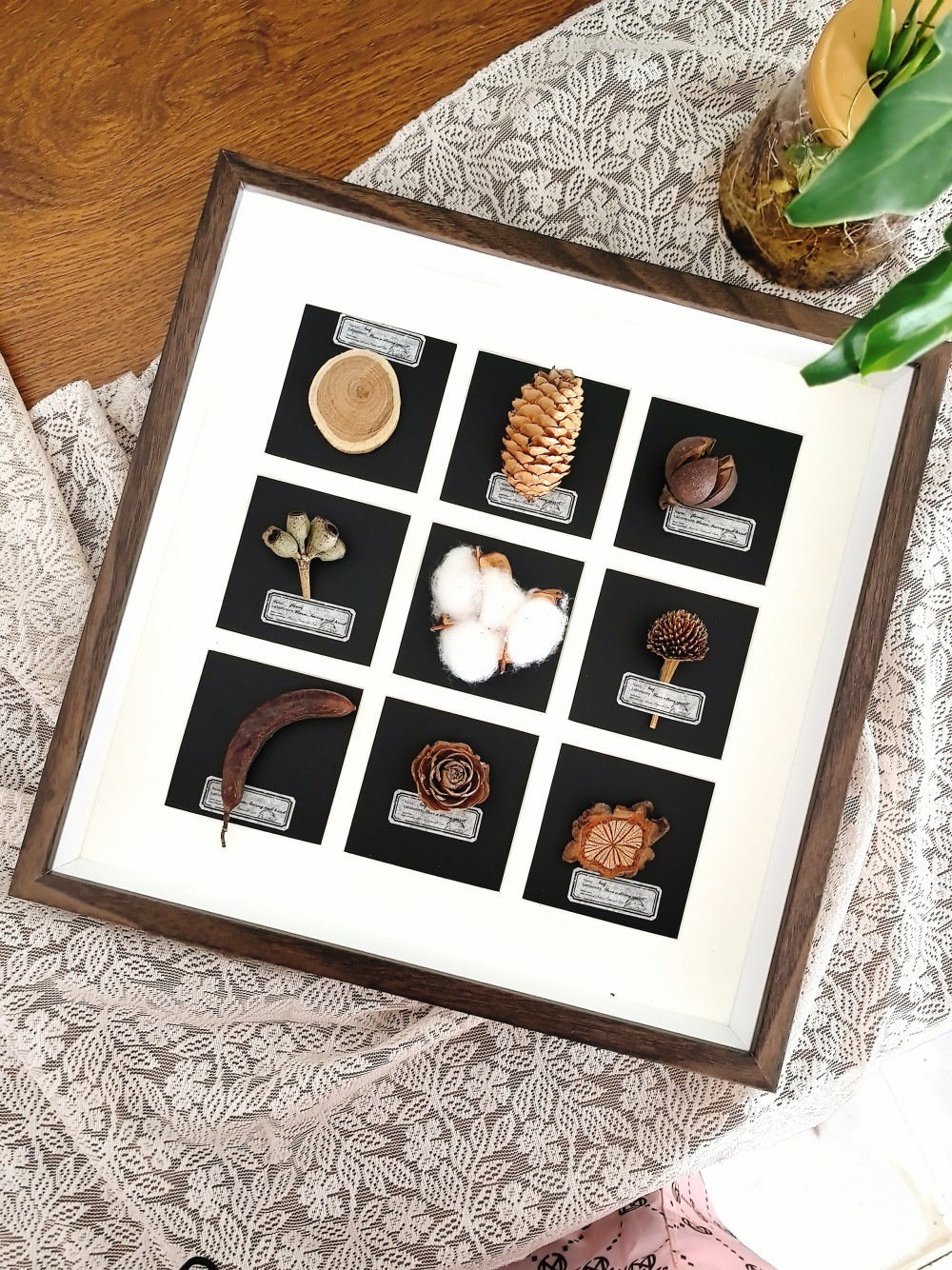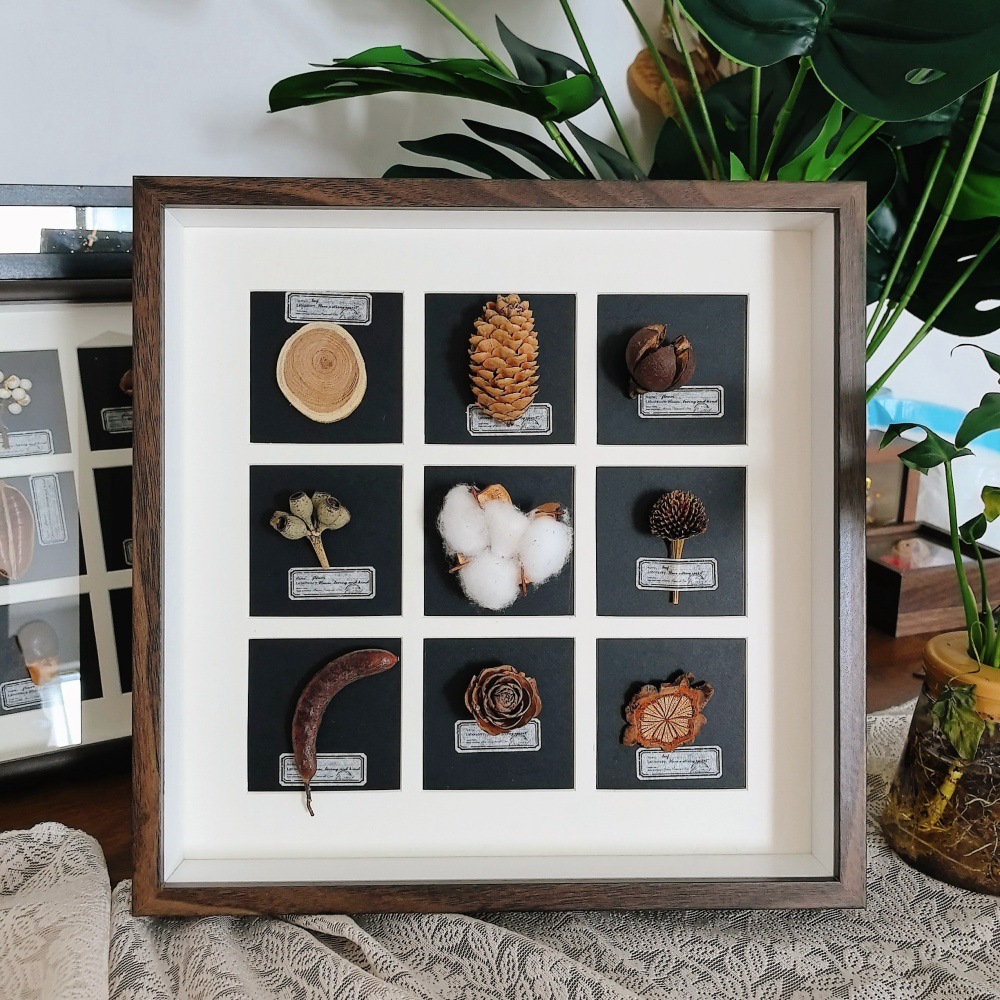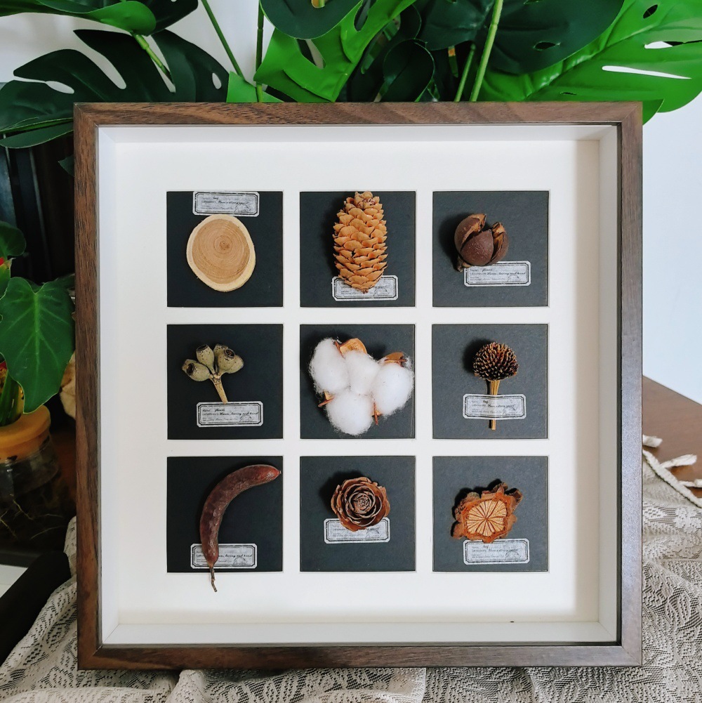 중공 3 차원 나무 사진 프레임 수제 DIY 창조적 인 말린 꽃 식물 과일 표본 9 홀 궁전 광장 진자 프레임