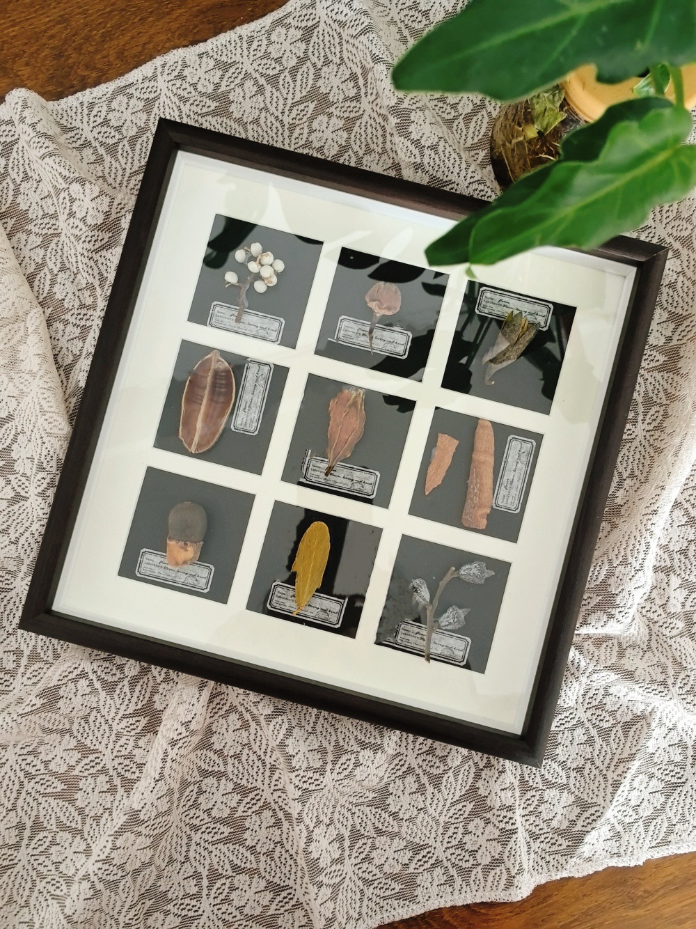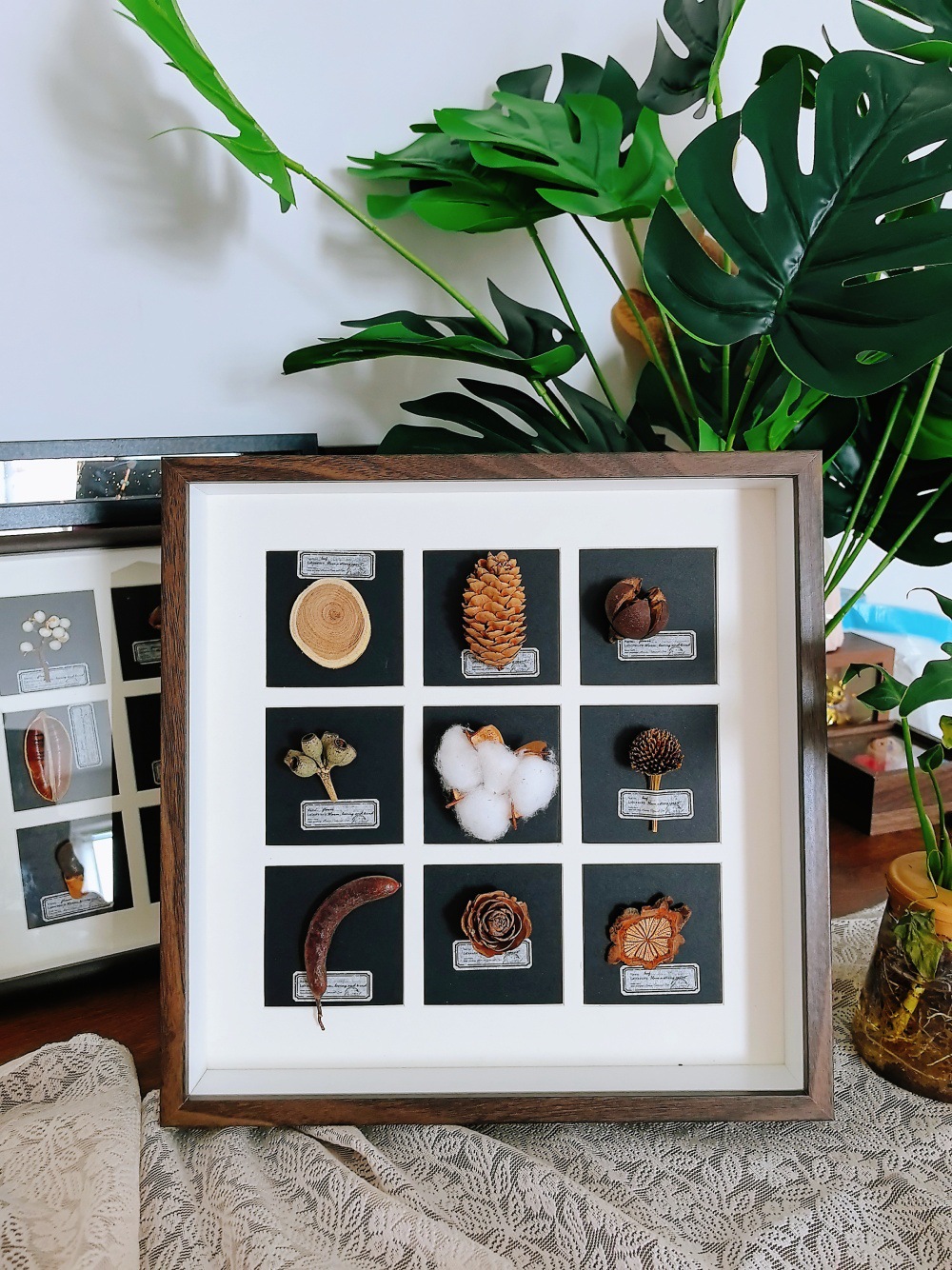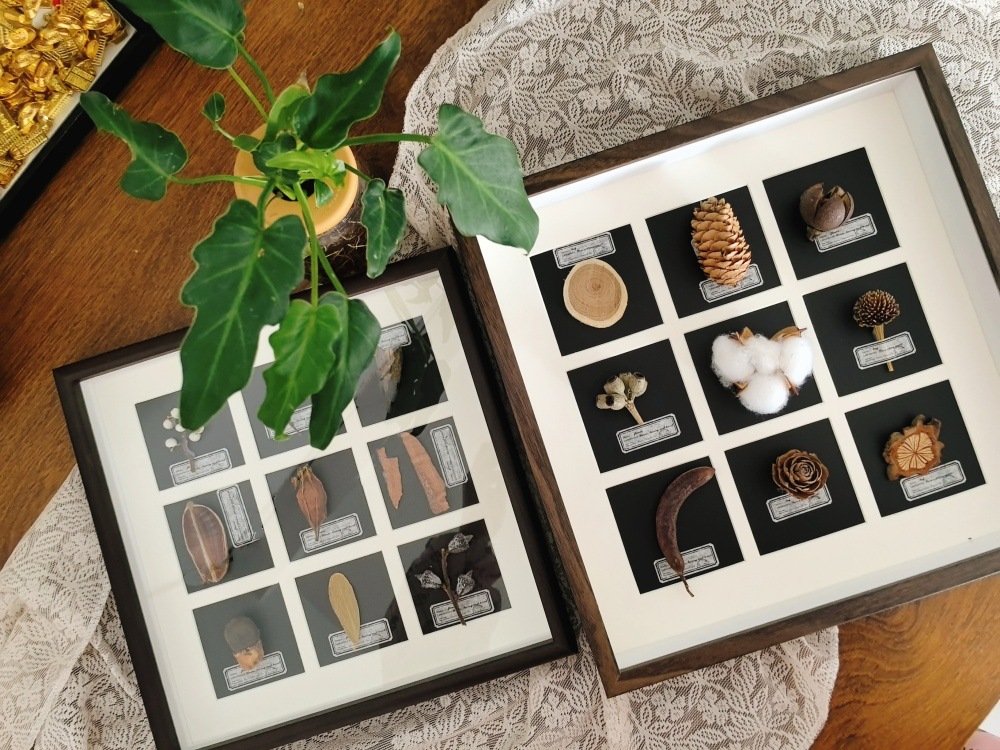 중공 3 차원 나무 사진 프레임 수제 DIY 창조적 인 말린 꽃 식물 과일 표본 9 홀 궁전 광장 진자 프레임