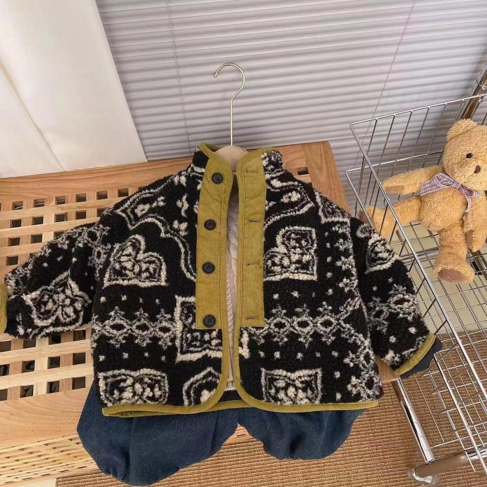 어린이 한국식 플로랄 마오 재킷 소년 22 겨울 새 여성 바오양 스타일 싱글 브레스트 따뜻한 면 패딩 코트