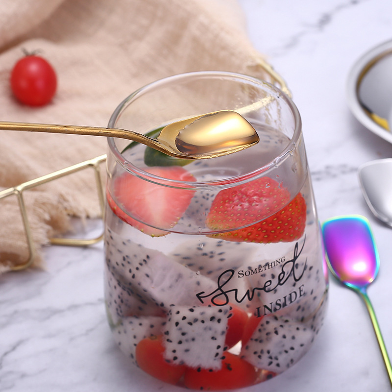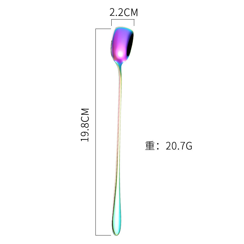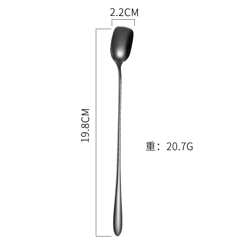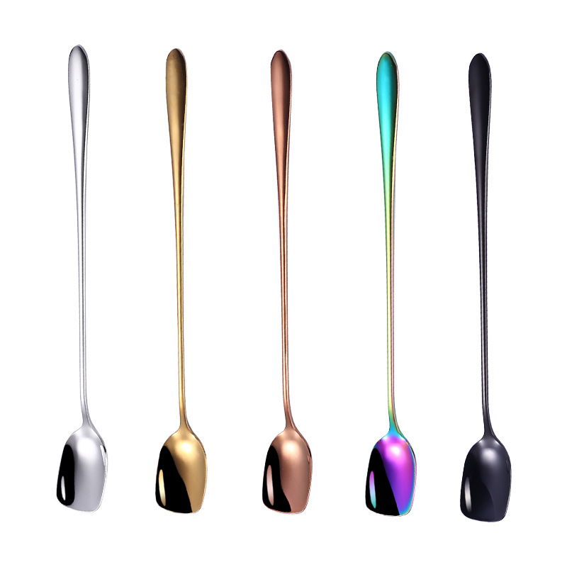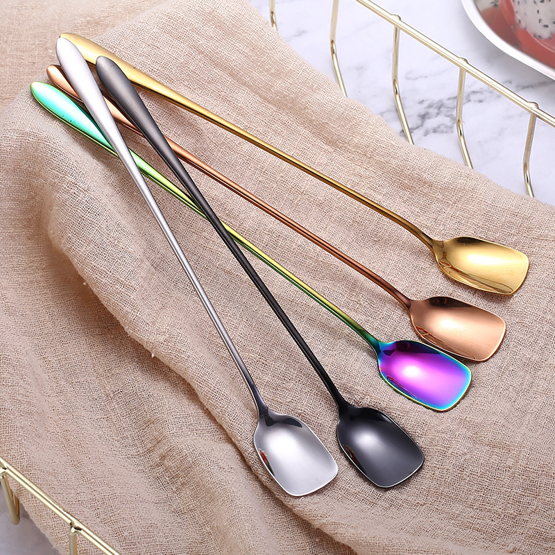 새로운 커피 긴 손잡이 숟가락 작은 숟가락을위한 304 스테인레스 스틸 혼합 숟가락 창조적 인 사각형 얼음 숟가락 삽 머리 숟가락 국경 특별