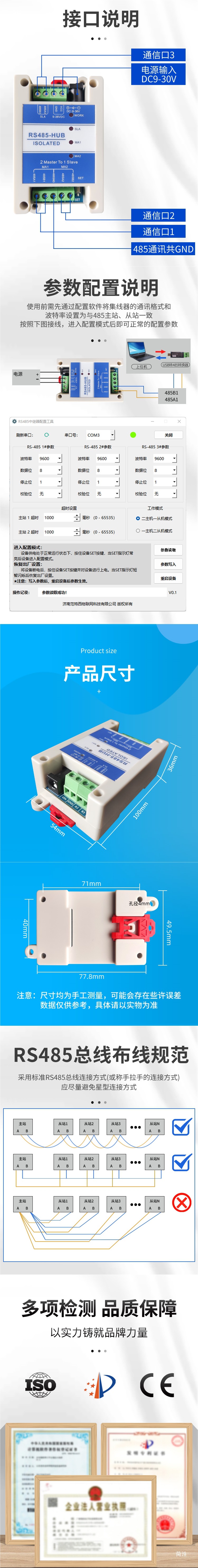 2 마스터-1 슬레이브 멀티-슬레이브 캐시 rs485 허브 자기 결합 격리 중계기 이중 호스트 산업 등급 2 마스터스토어 가기