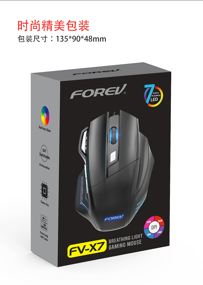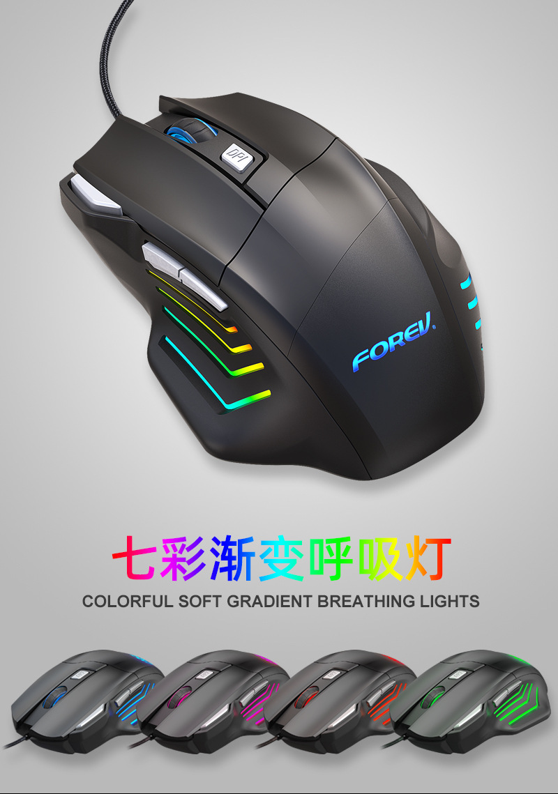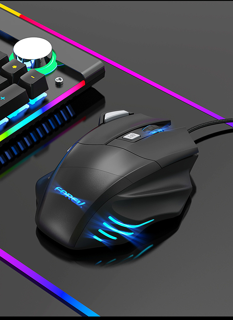 유선 게임 전자 스포츠 마우스 7 키 인체 공학 FVX7 데스크톱 컴퓨터 DPI 조정 가능한 빛나는 마우스 마우스스토어 가기
