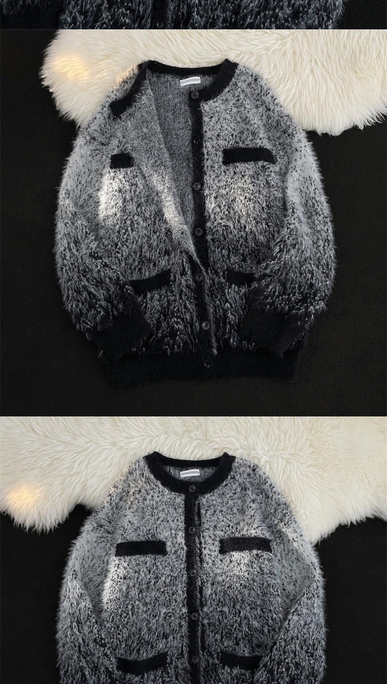틈새 잉크 그라디언트 컬러 매칭 디자인 스웨터 카디건 코트 간단한 하이 엔드 스웨터스토어 가기