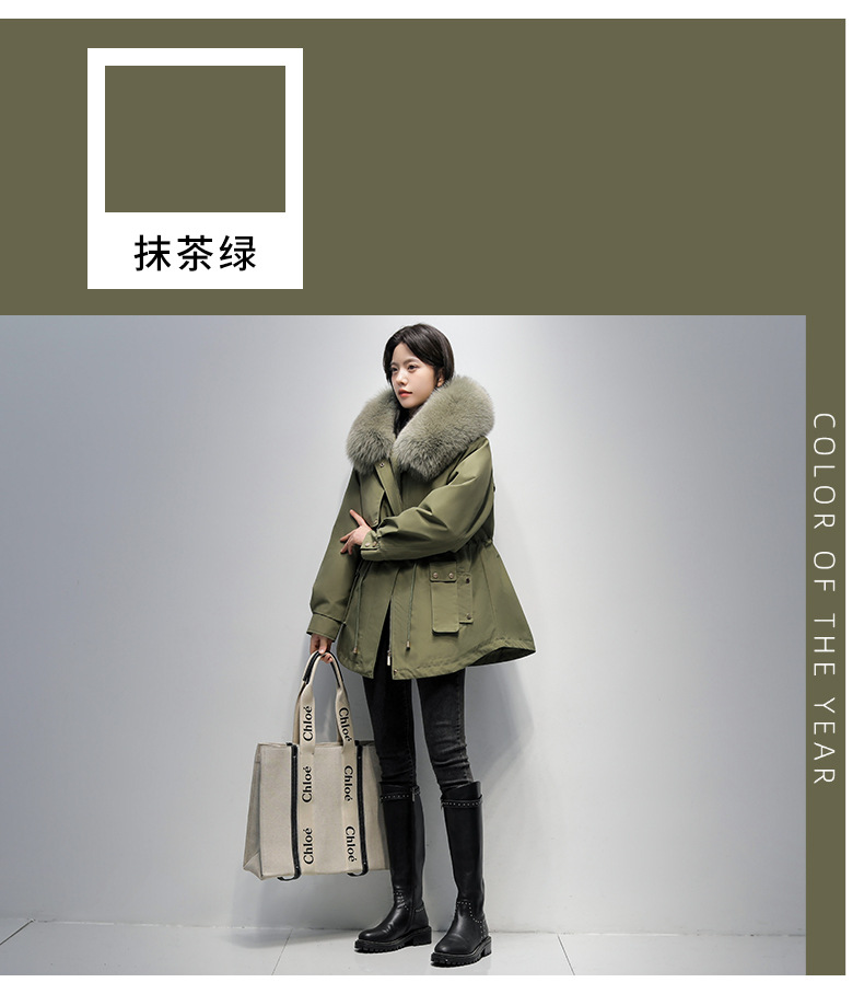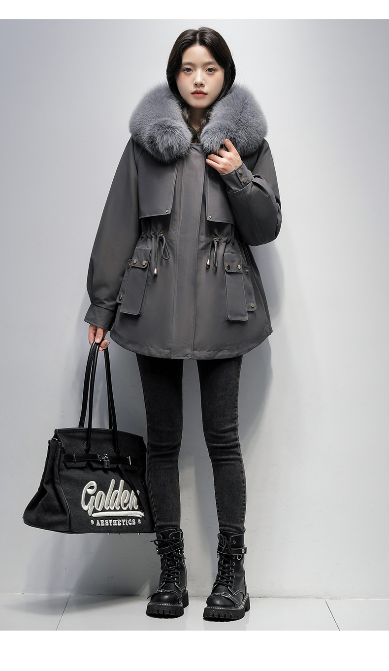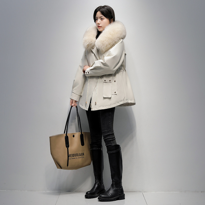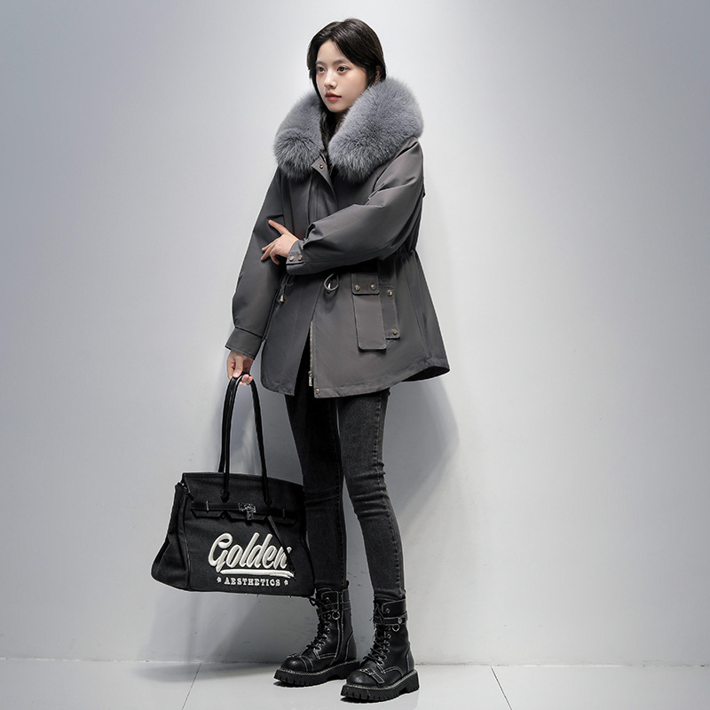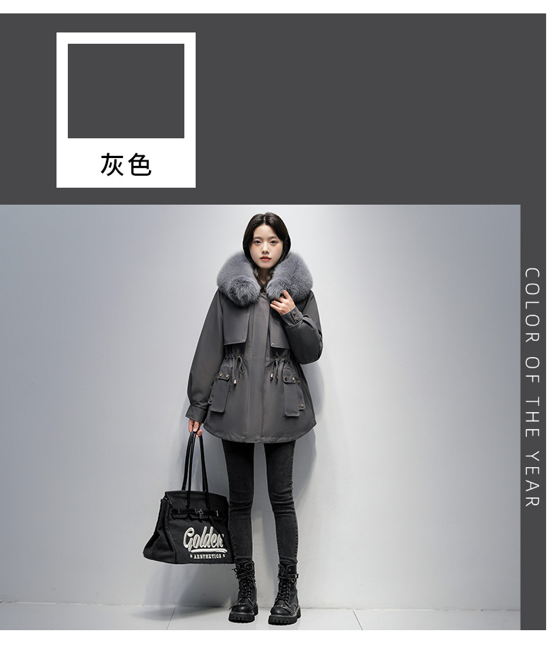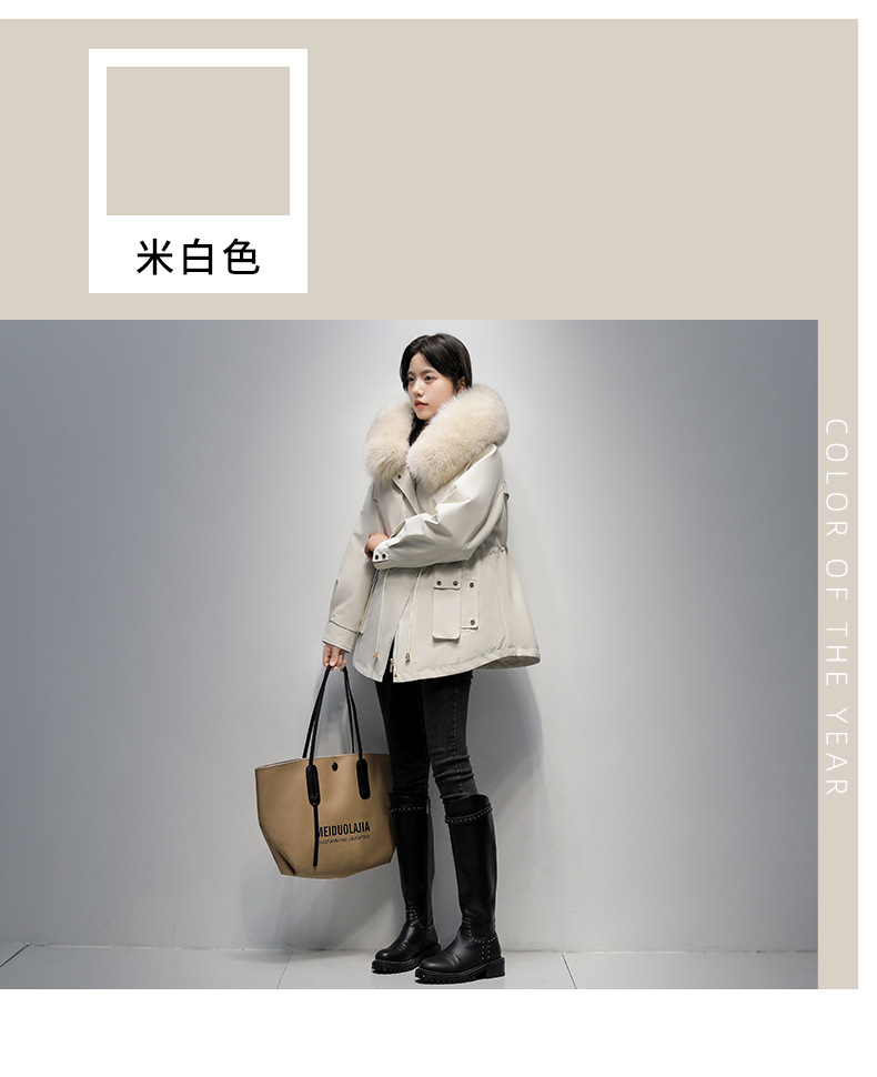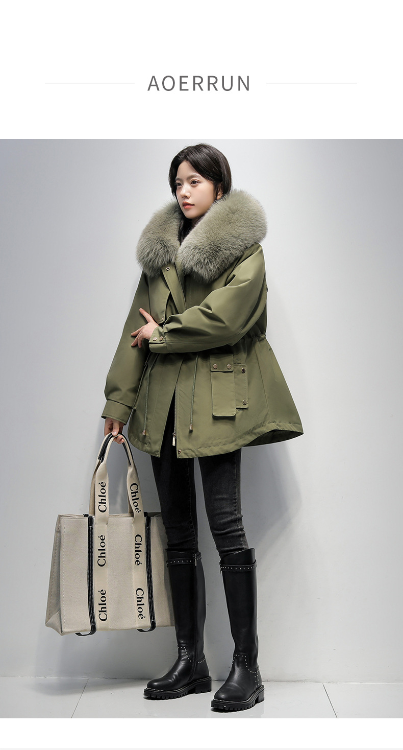 토끼털 안감 여우털 파카 여성용 2025 겨울 젊은 스타일 탈부착 가능 작은 사이즈 슬림핏 모피 코트