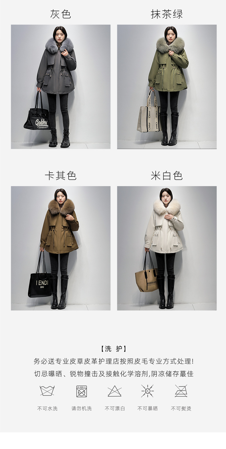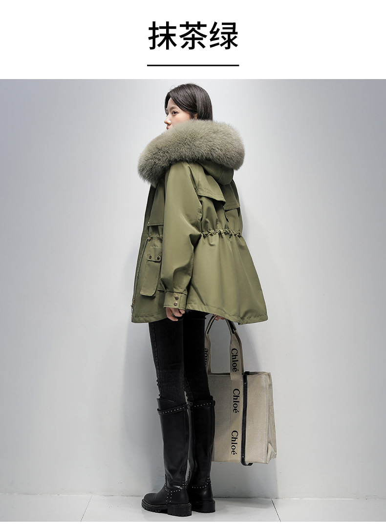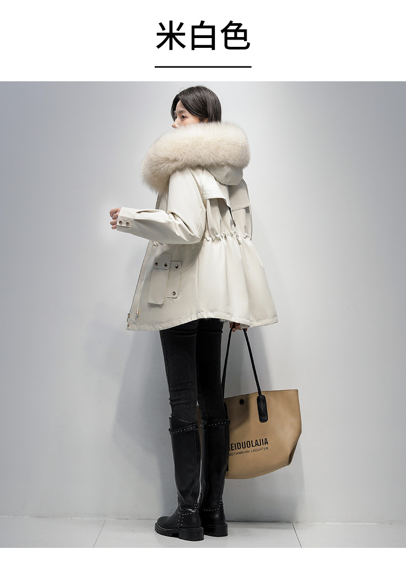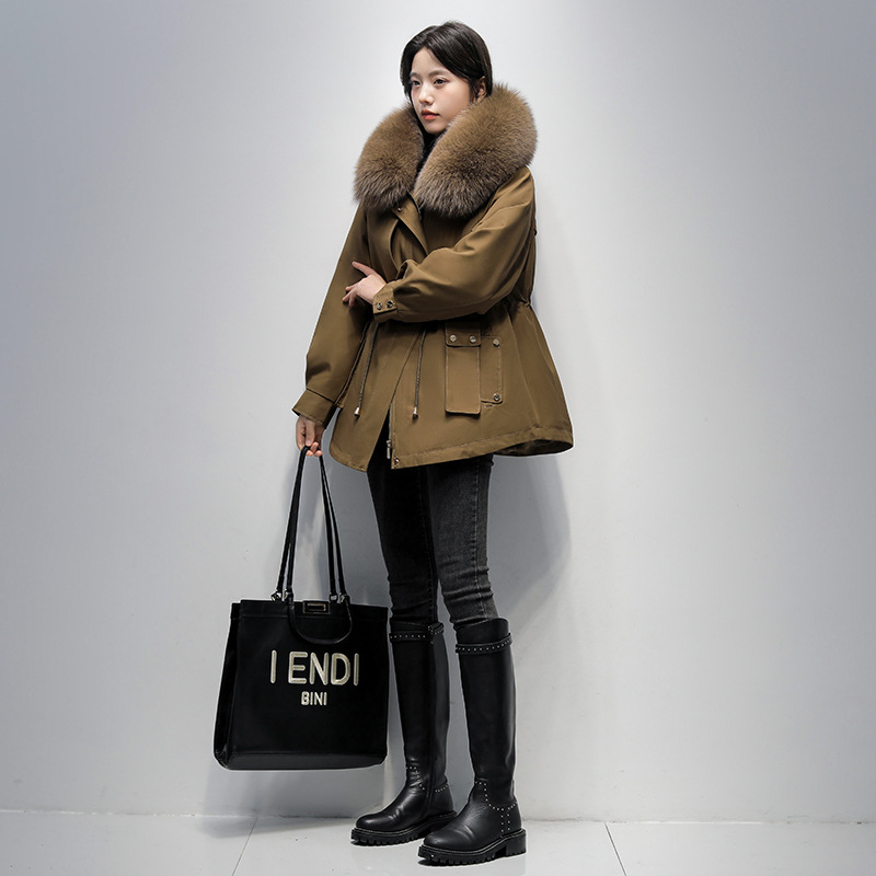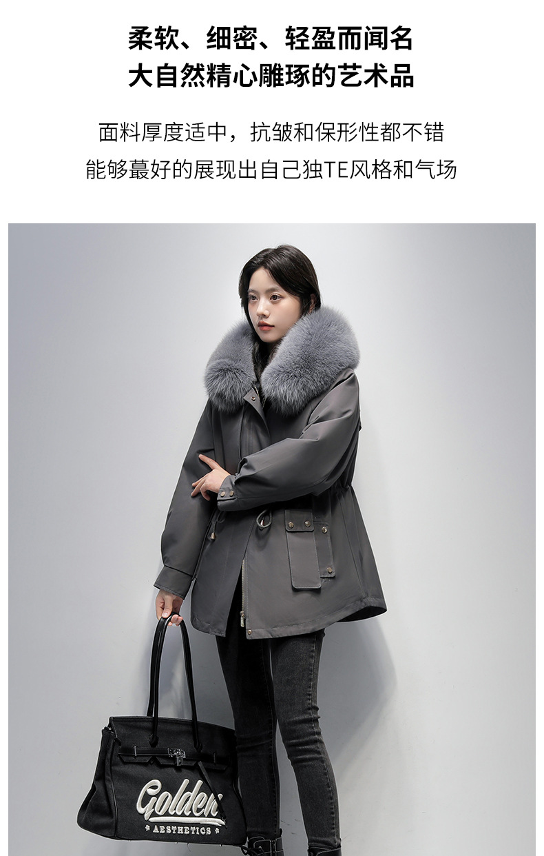 토끼털 안감 여우털 파카 여성용 2025 겨울 젊은 스타일 탈부착 가능 작은 사이즈 슬림핏 모피 코트스토어 가기