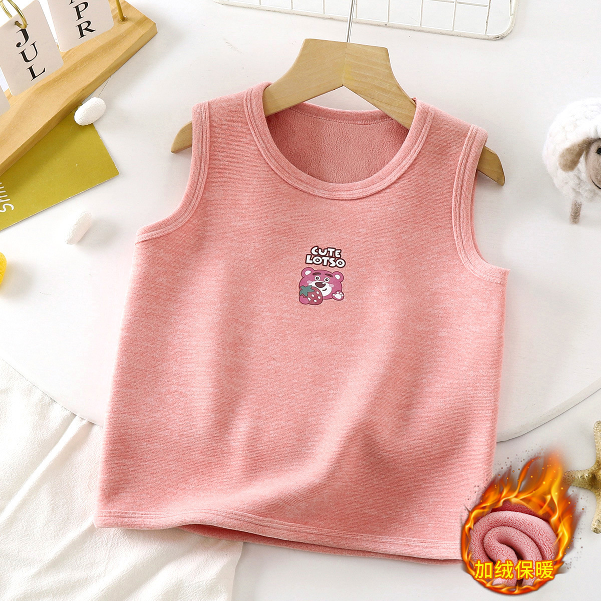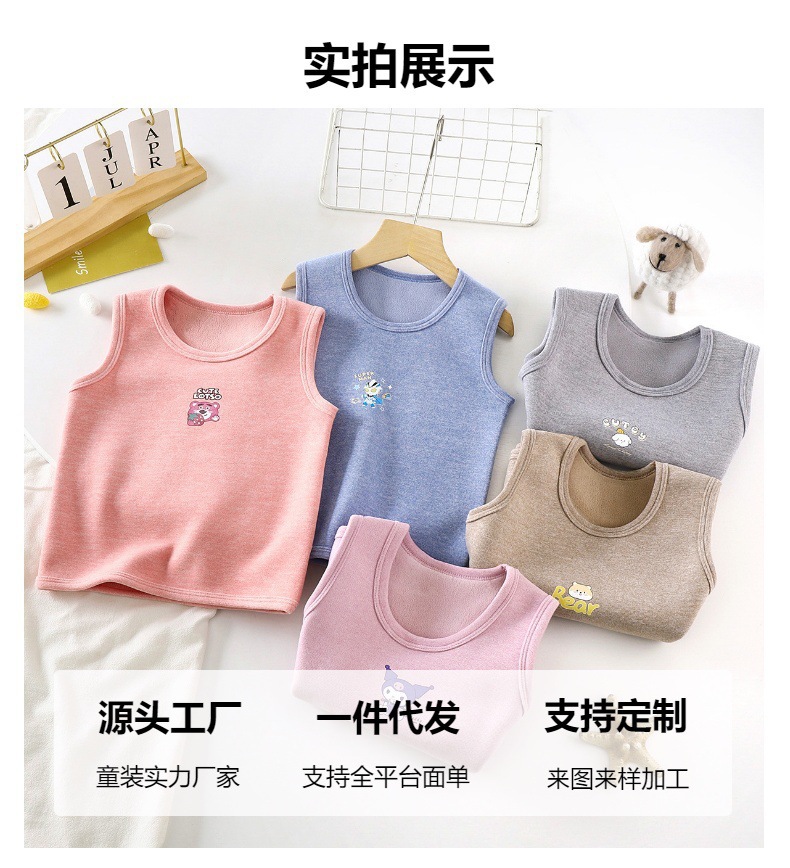 어린이 따뜻한 조끼 드 벨벳 오스트리아 곡물 양털 뼈없는 기모 두꺼운 소년 소녀 만화 조끼 속옷 양복 조끼 도매스토어 가기