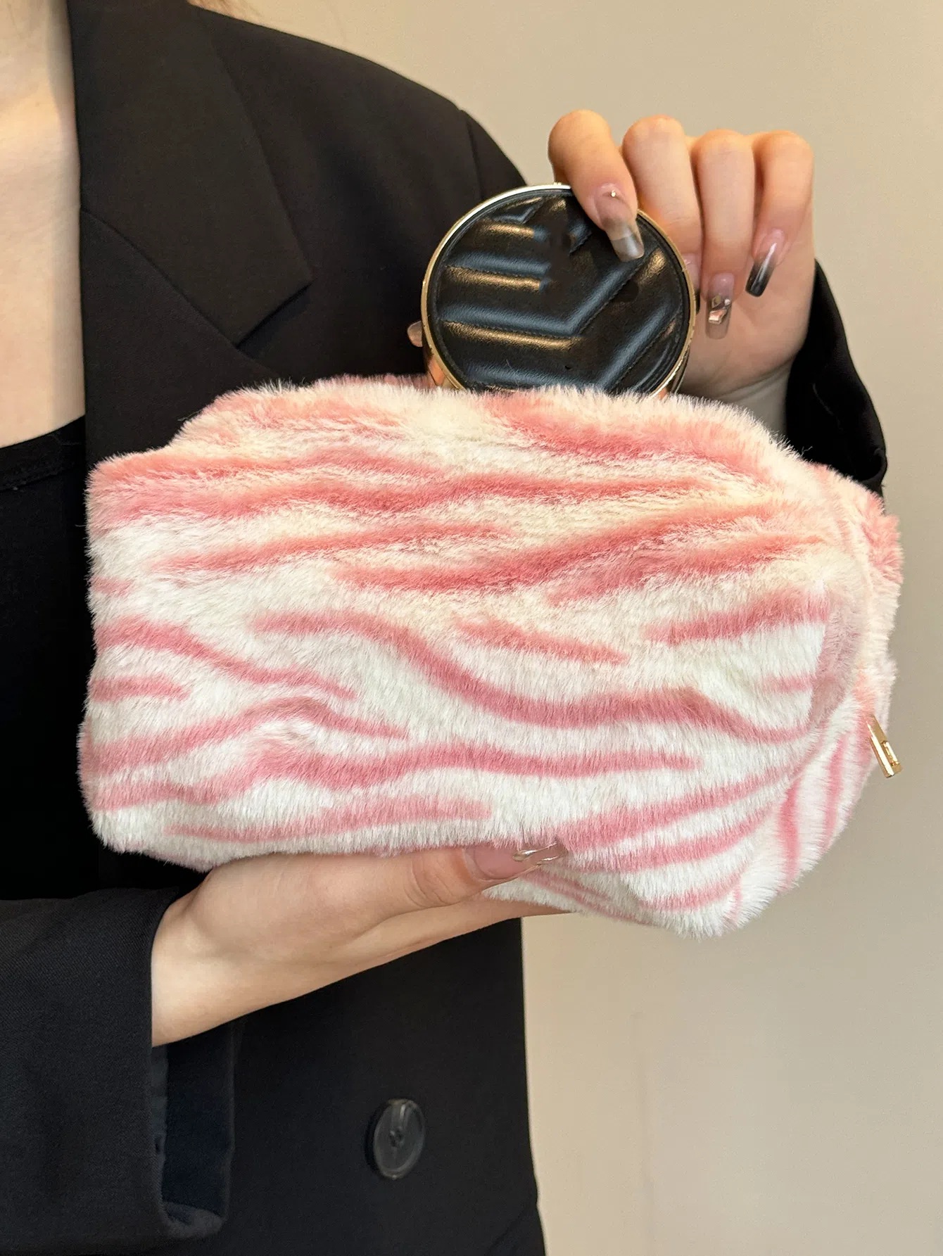 • 플러시 얼룩말 베개 가방.핑크