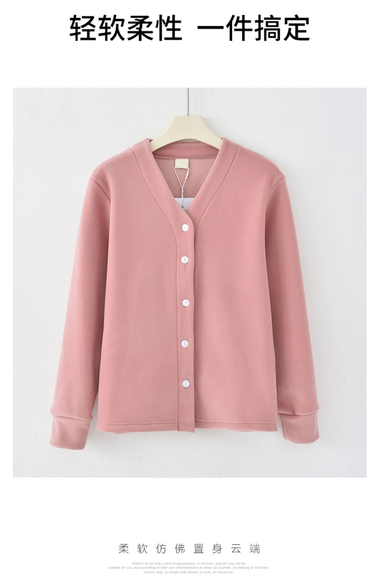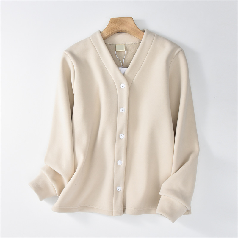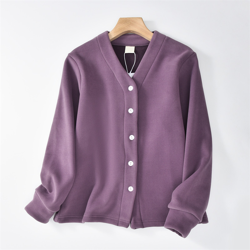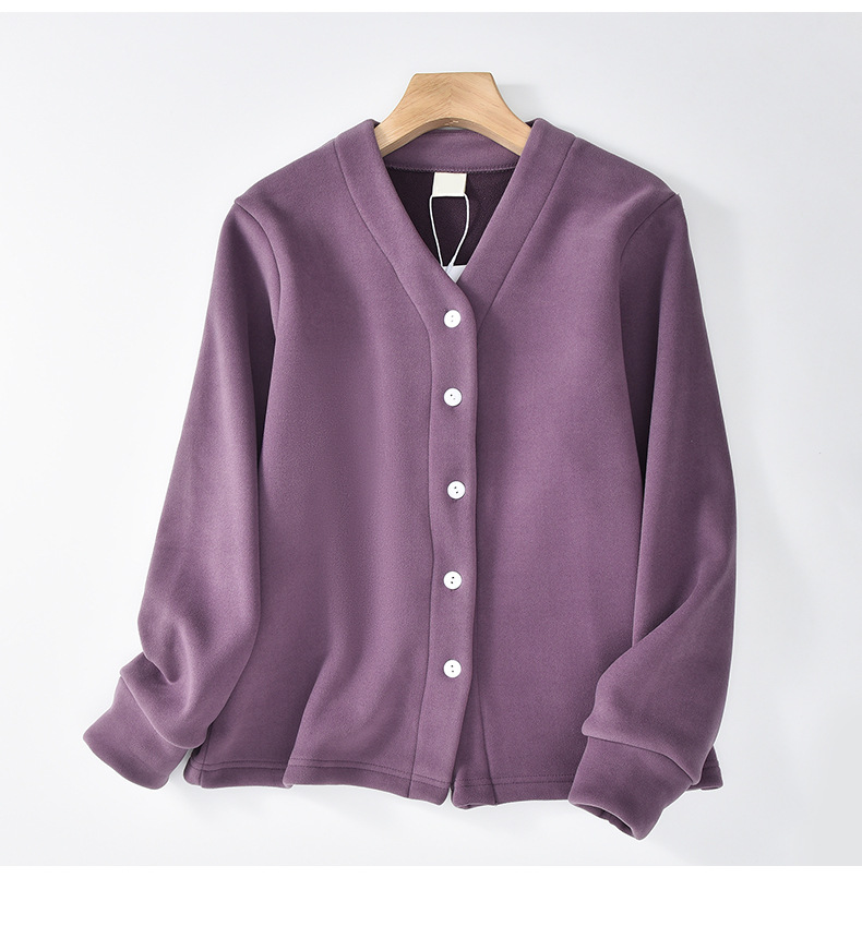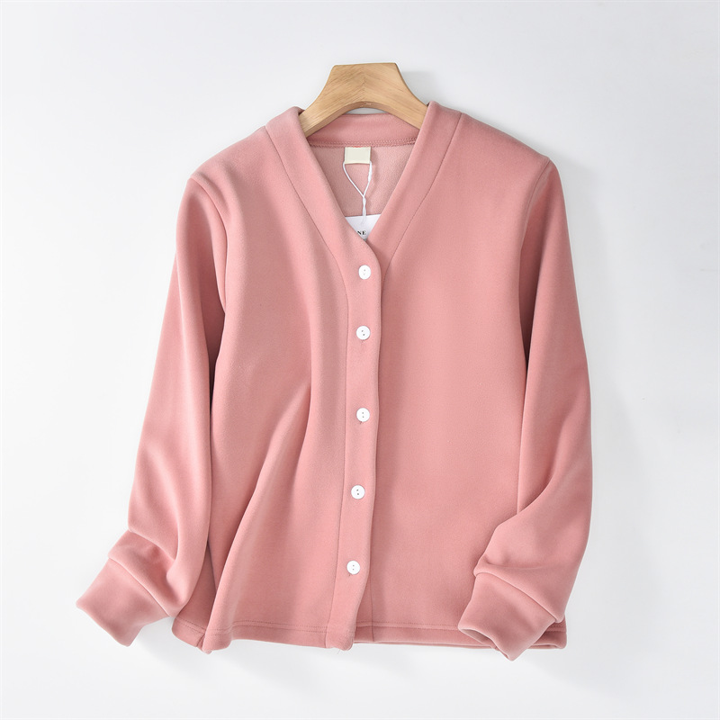 秋冬加绒奥粒绒加厚外套女v领开衫德绒保暖夹克休闲宽松外穿上衣