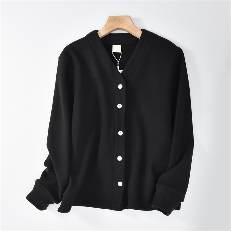 가을과 겨울 기모 올림픽 벨벳 두꺼운 코트 여자 V-넥 카디건 벨벳 따뜻한 재킷 캐주얼 루즈 아우터 탑