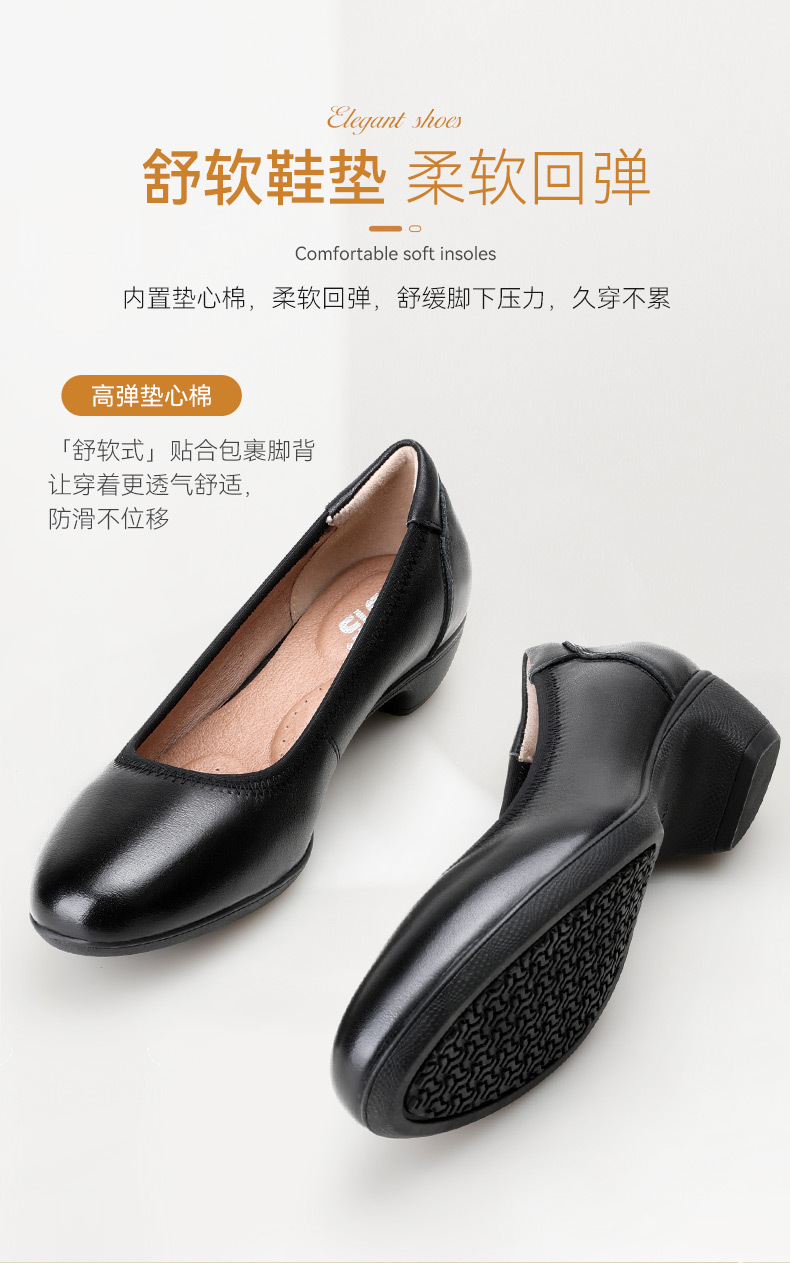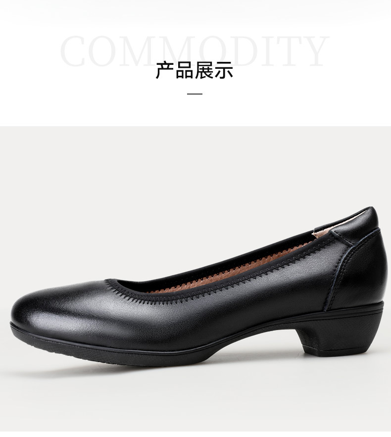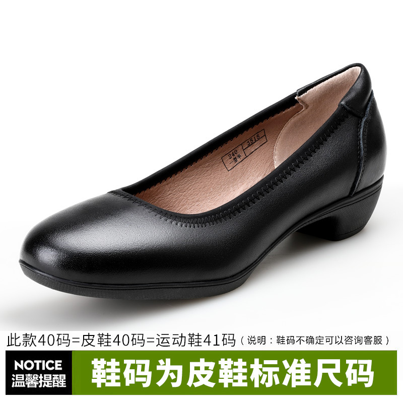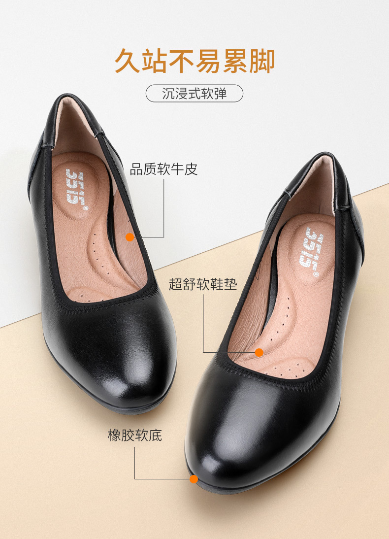 Jihua 3515 여성용 얕은 입 가죽 신발 새로운 올매치 가죽 두꺼운 힐 부드러운 바닥 작업 신발 장시간 스탠드 피곤하지 않은 전문 신발스토어 가기