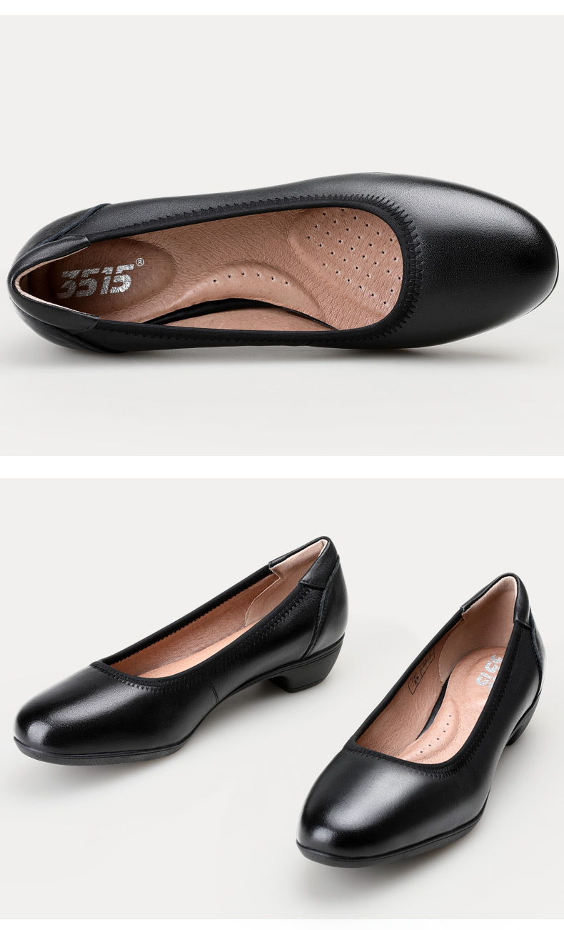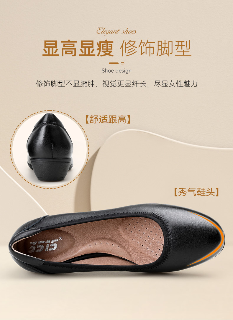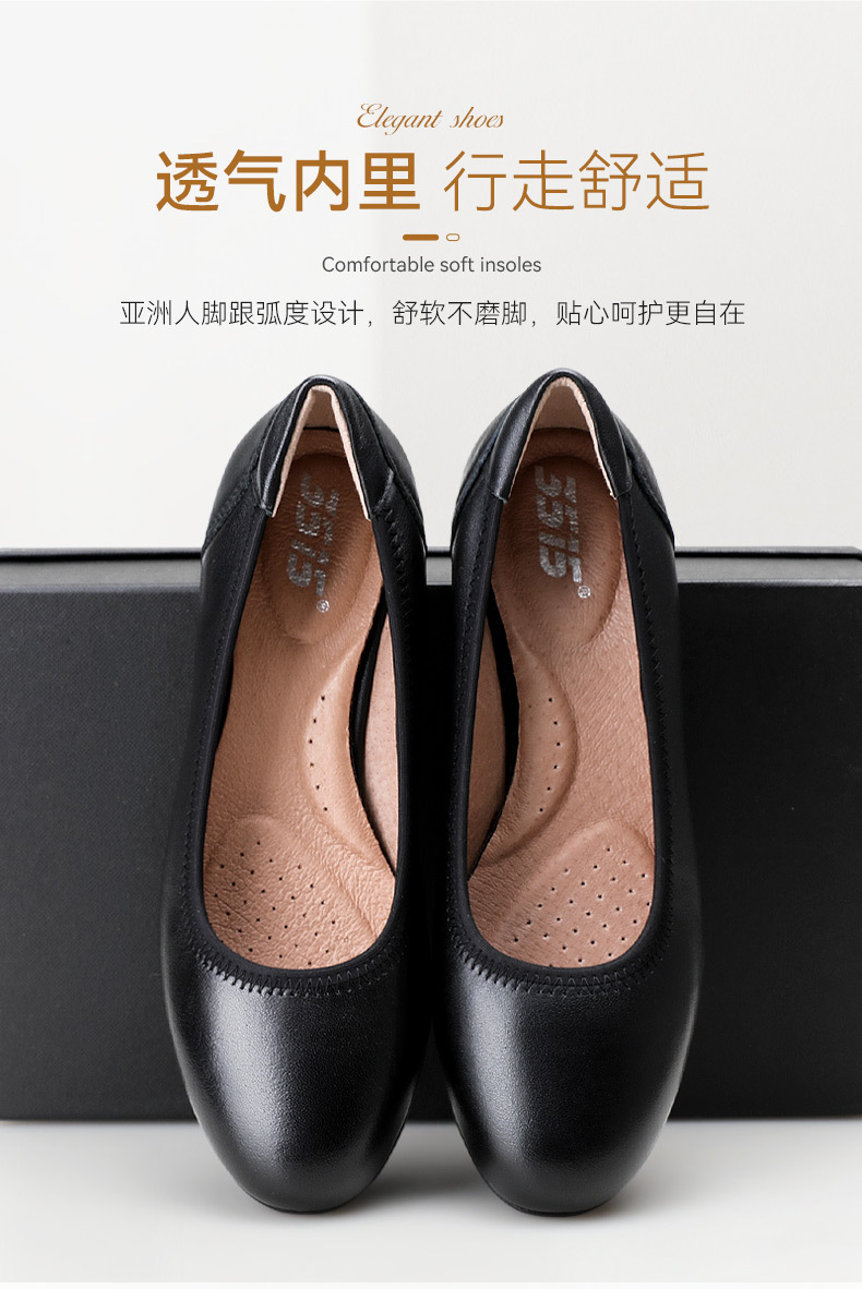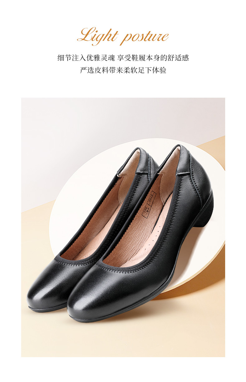 Jihua 3515 여성용 얕은 입 가죽 신발 새로운 올매치 가죽 두꺼운 힐 부드러운 바닥 작업 신발 장시간 스탠드 피곤하지 않은 전문 신발스토어 가기