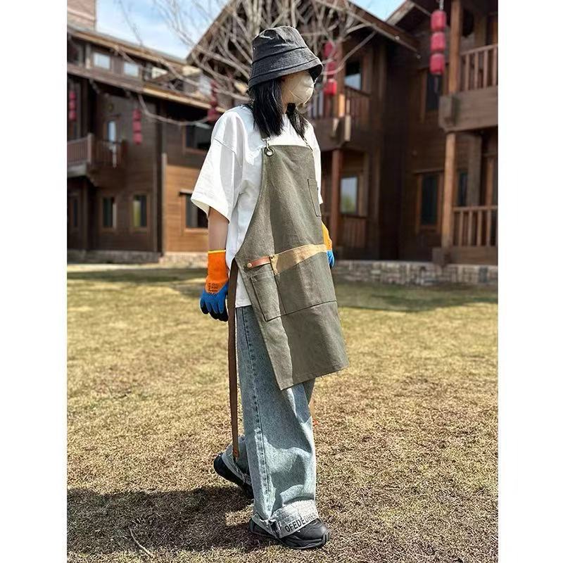 미국 캔버스 앞치마 바리 스타 베이킹 샵 꽃 원예 주방 작업 어깨 맞춤형 로고 인쇄스토어 가기
