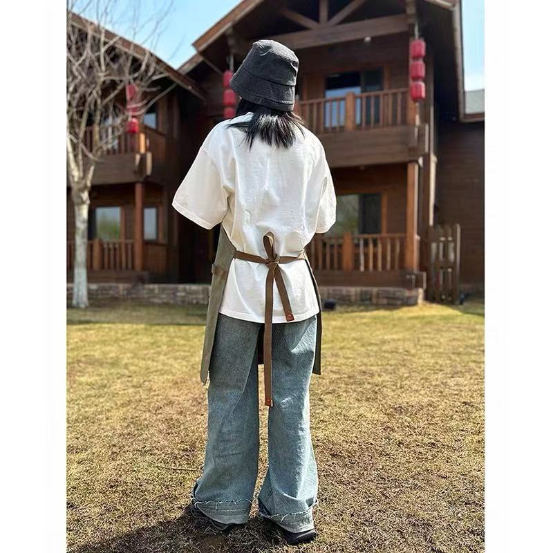 미국 캔버스 앞치마 바리 스타 베이킹 샵 꽃 원예 주방 작업 어깨 맞춤형 로고 인쇄