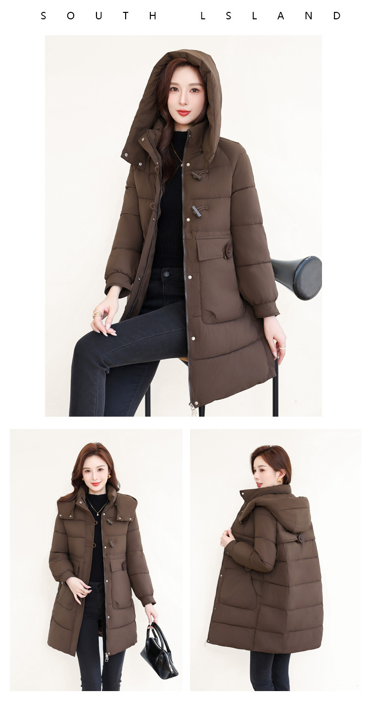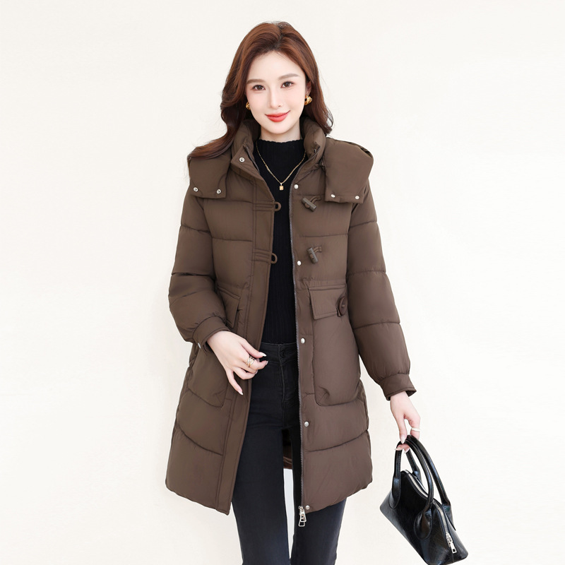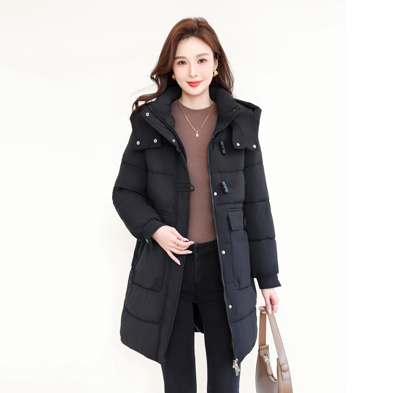 카운터 정품 여자 다운 재킷 겨울 화이트 덕 다운 올 매치 패션 중간 길이 두꺼운 후드 오버 더-무릎 재킷스토어 가기