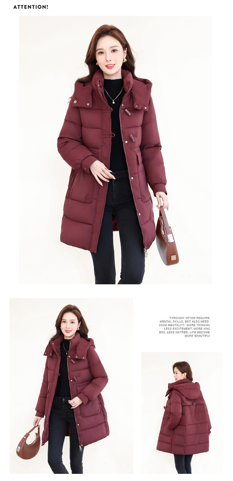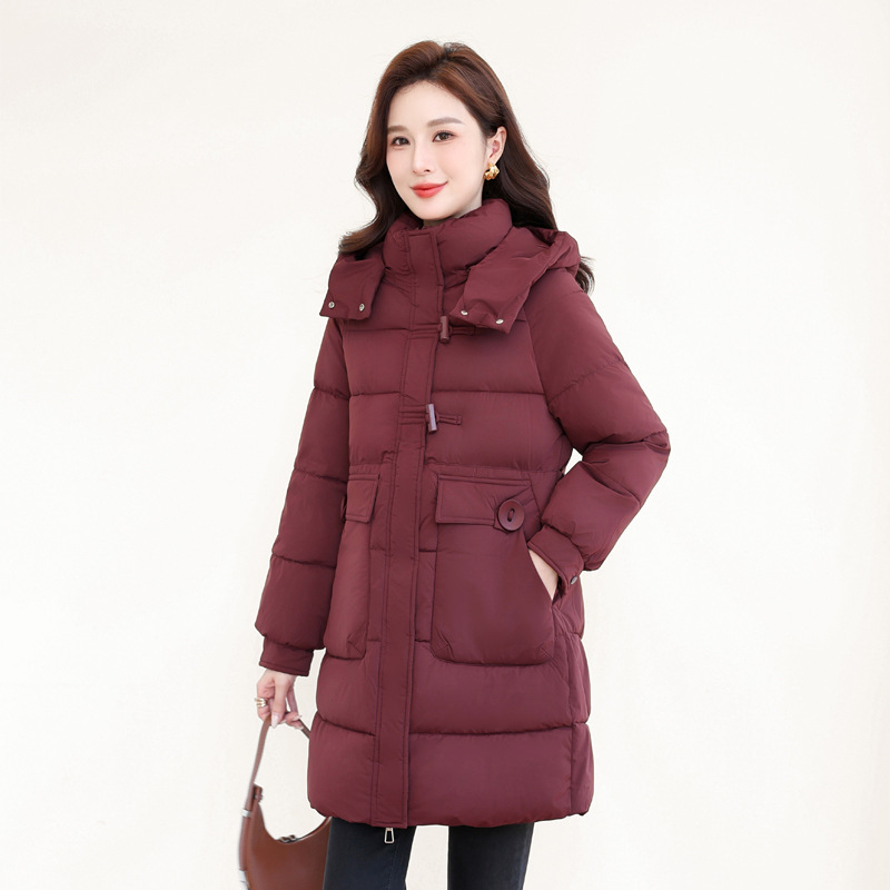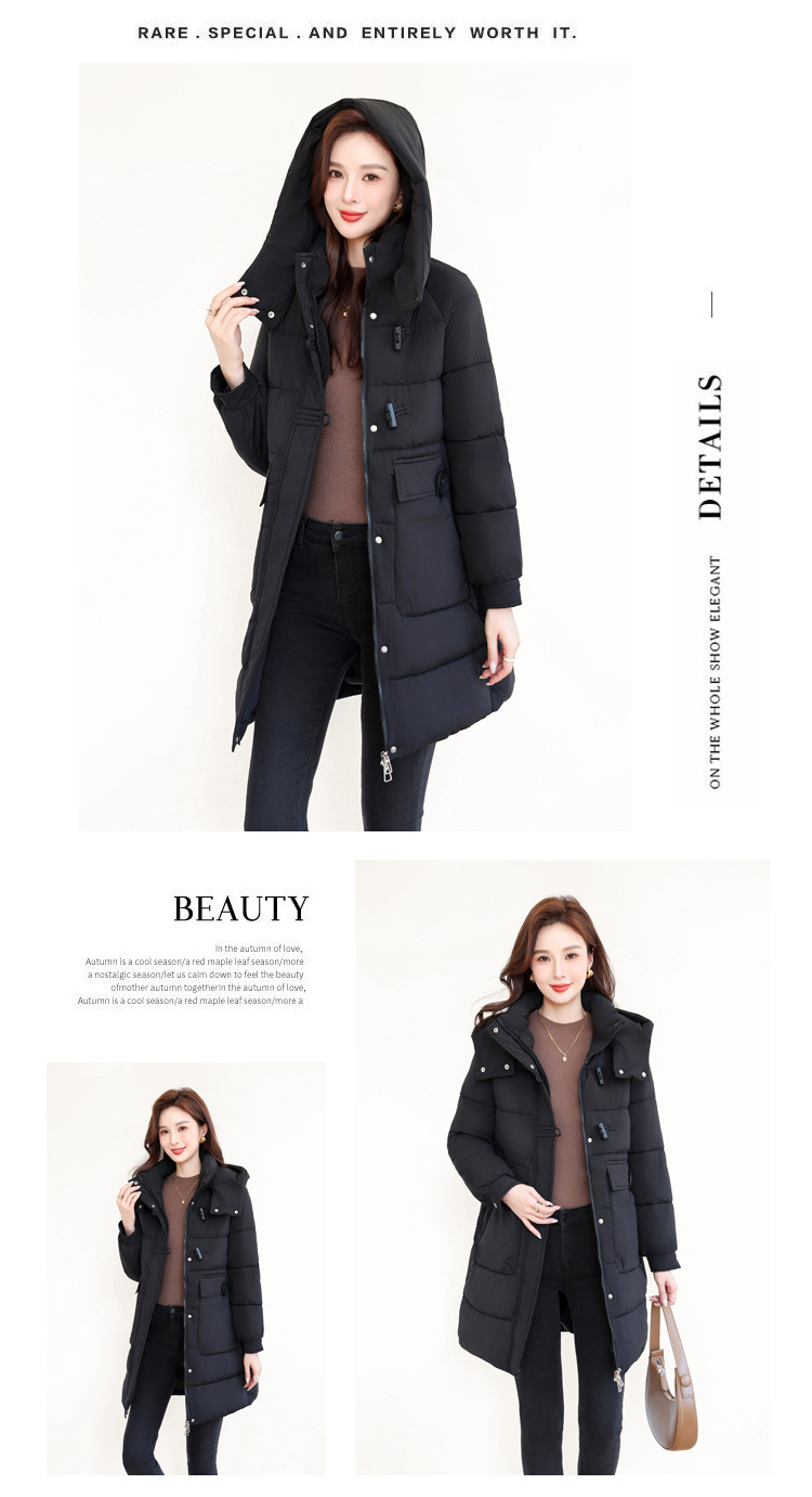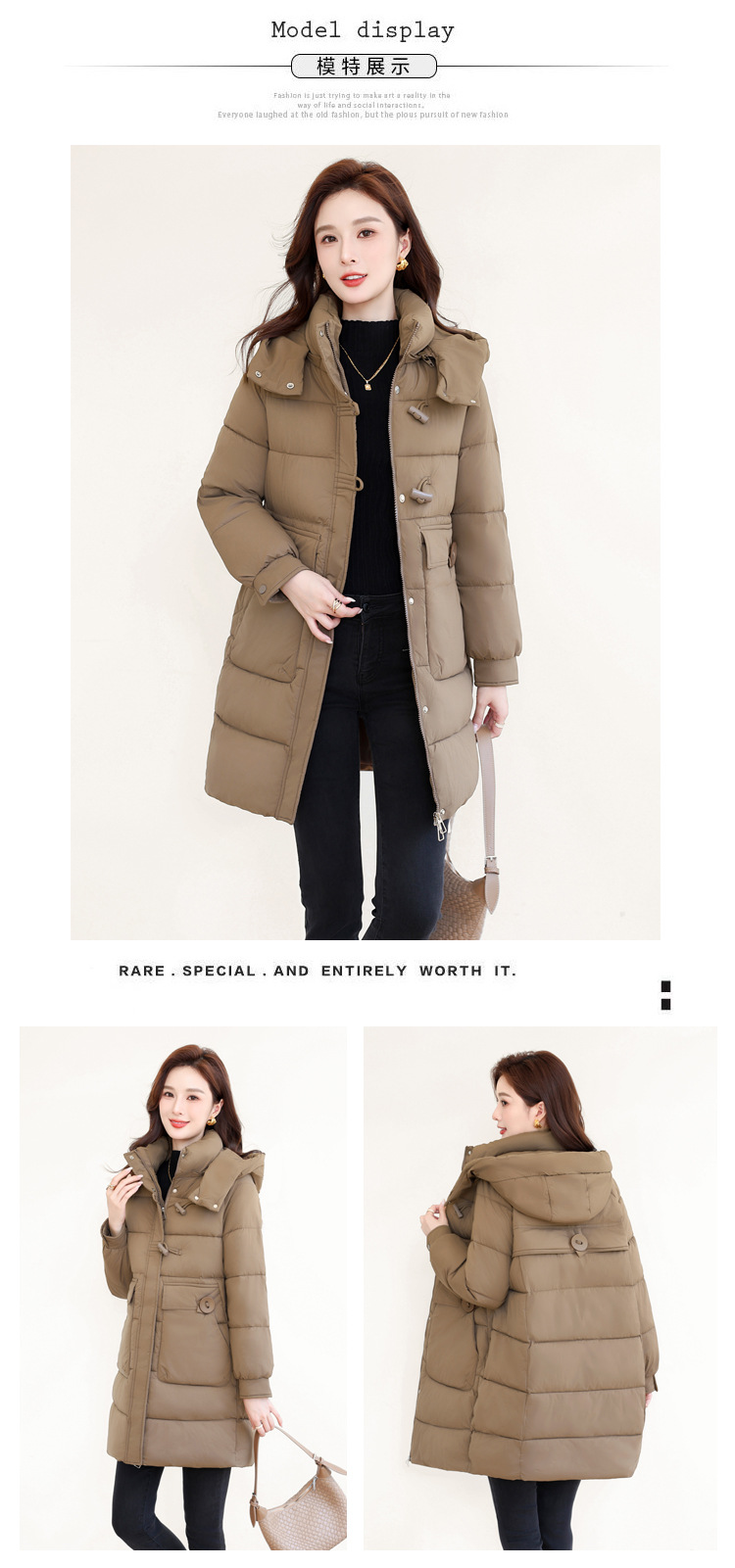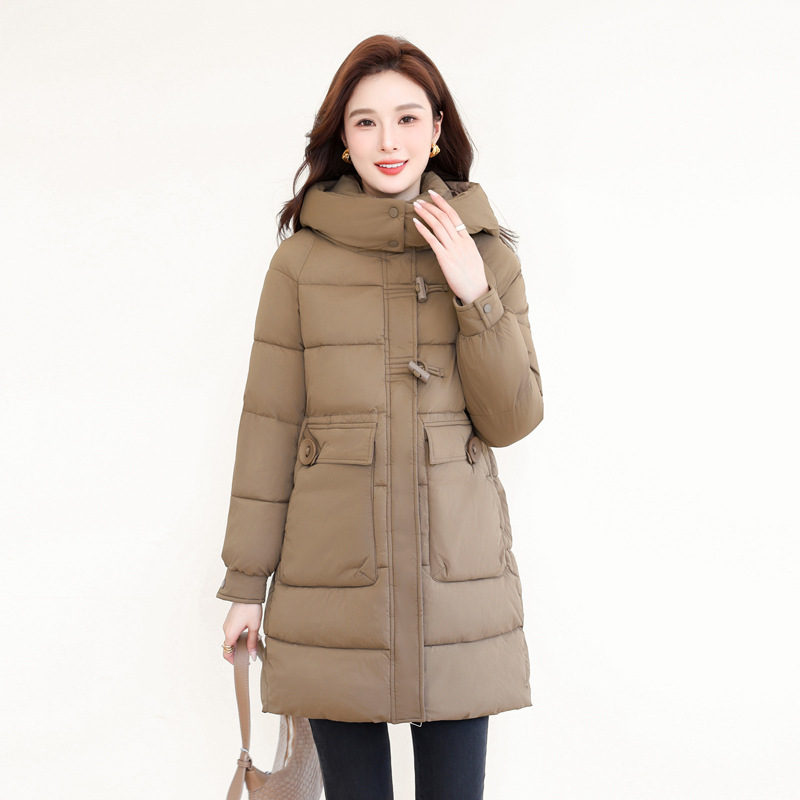카운터 정품 여자 다운 재킷 겨울 화이트 덕 다운 올 매치 패션 중간 길이 두꺼운 후드 오버 더-무릎 재킷