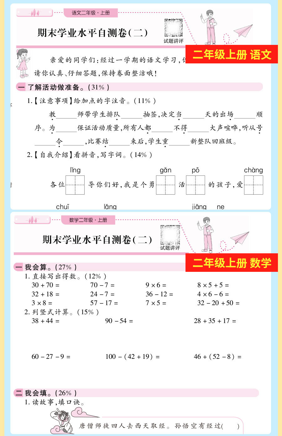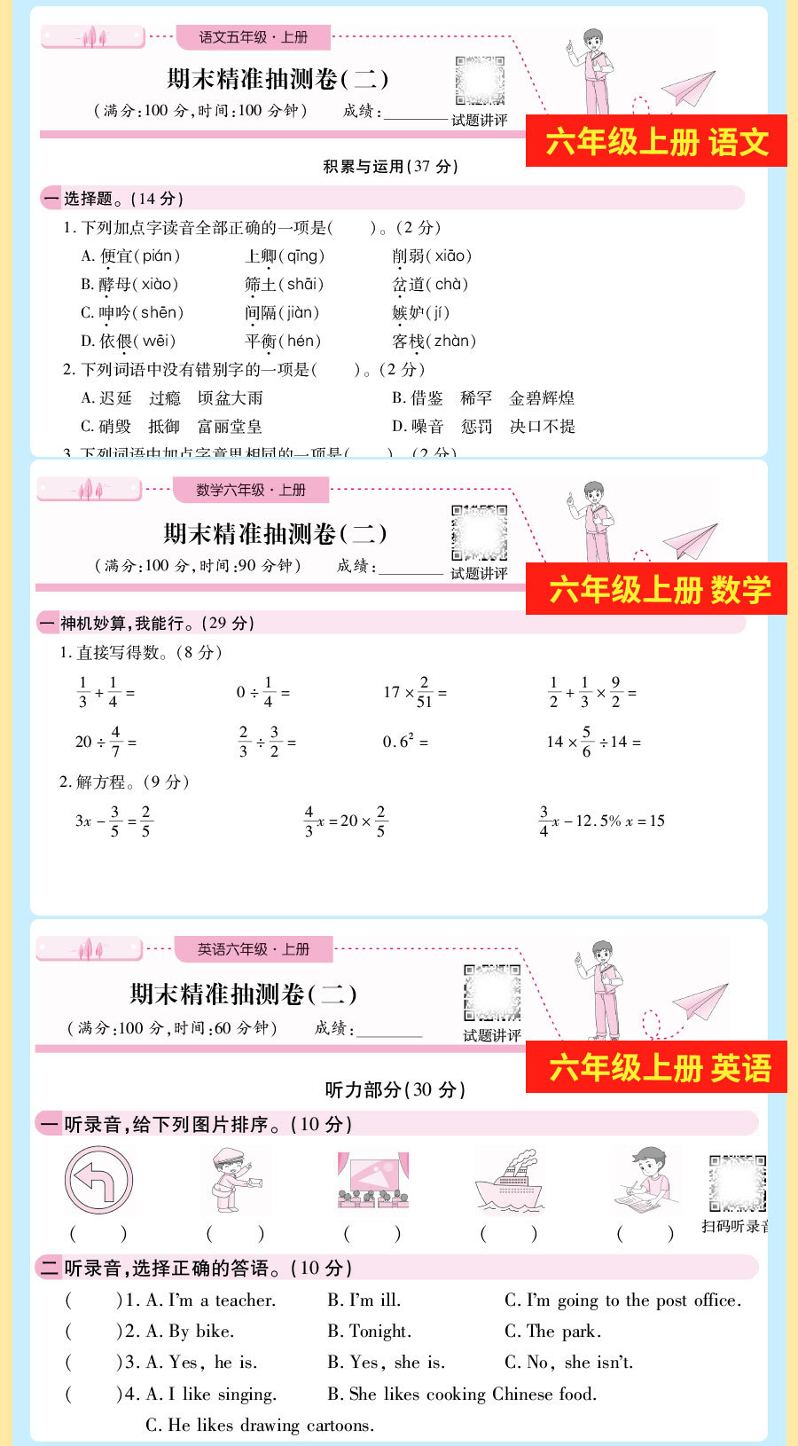 초등학교 1-6 학년, 상위 및 하위 권, 중국어, 수학 및 영어 최종 검토 및 평가스토어 가기