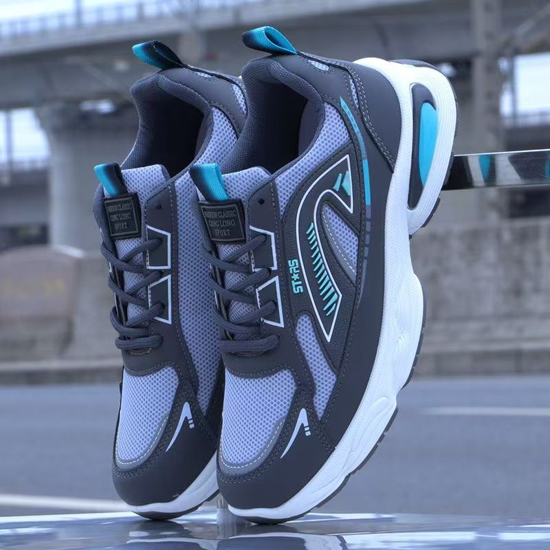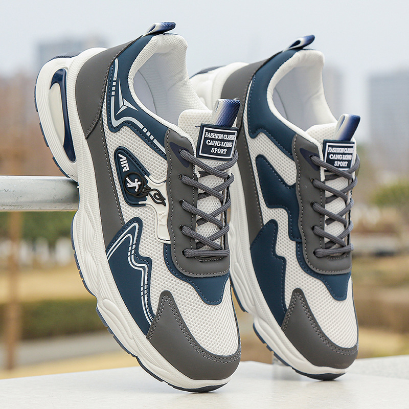 TikTok 폭발 남성 신발 여름 통기성 운동화 2025 새로운 메쉬 남성 캐주얼 신발 철자 듀오스토어 가기