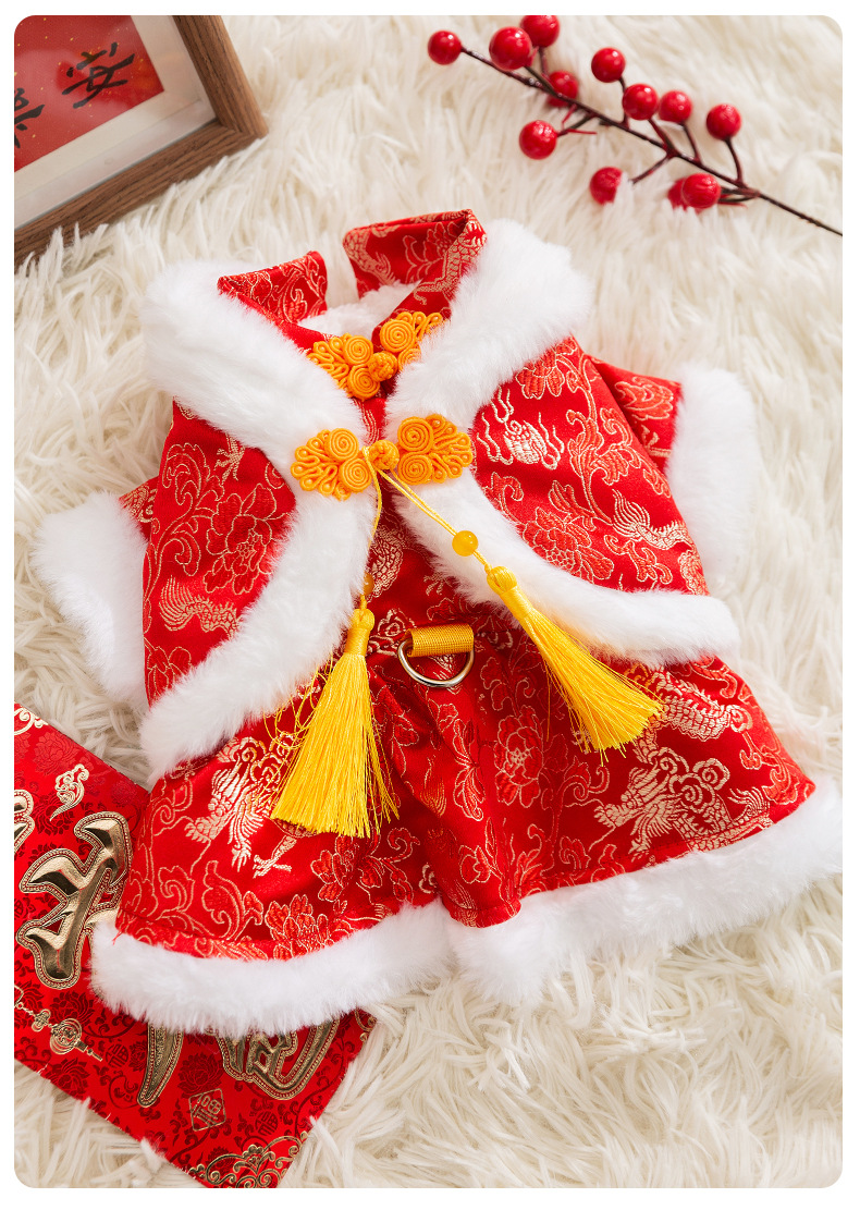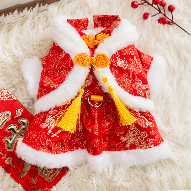 고양이 가을과 겨울 중국 술 단추 면화 패딩 의류 스커트 미디어와 작은 개 신년 당나라 세트 애완 동물 고양이 옷