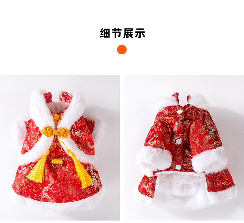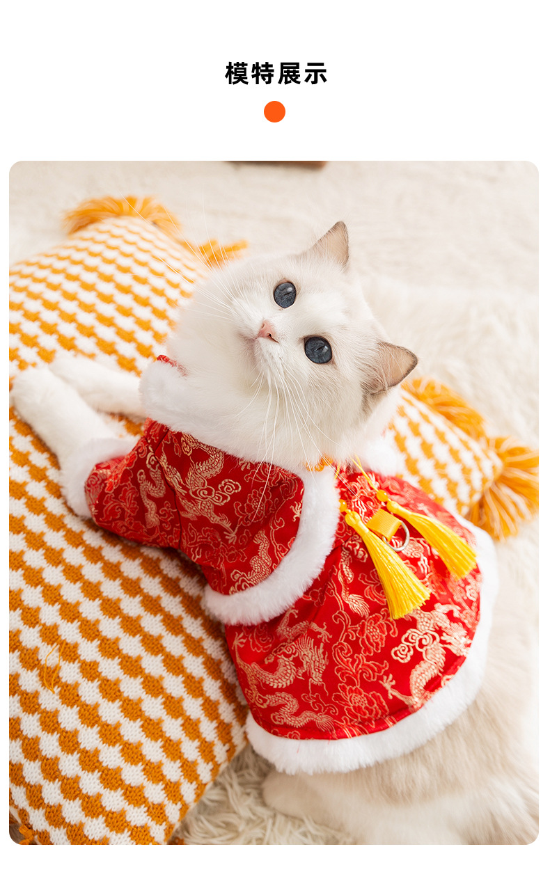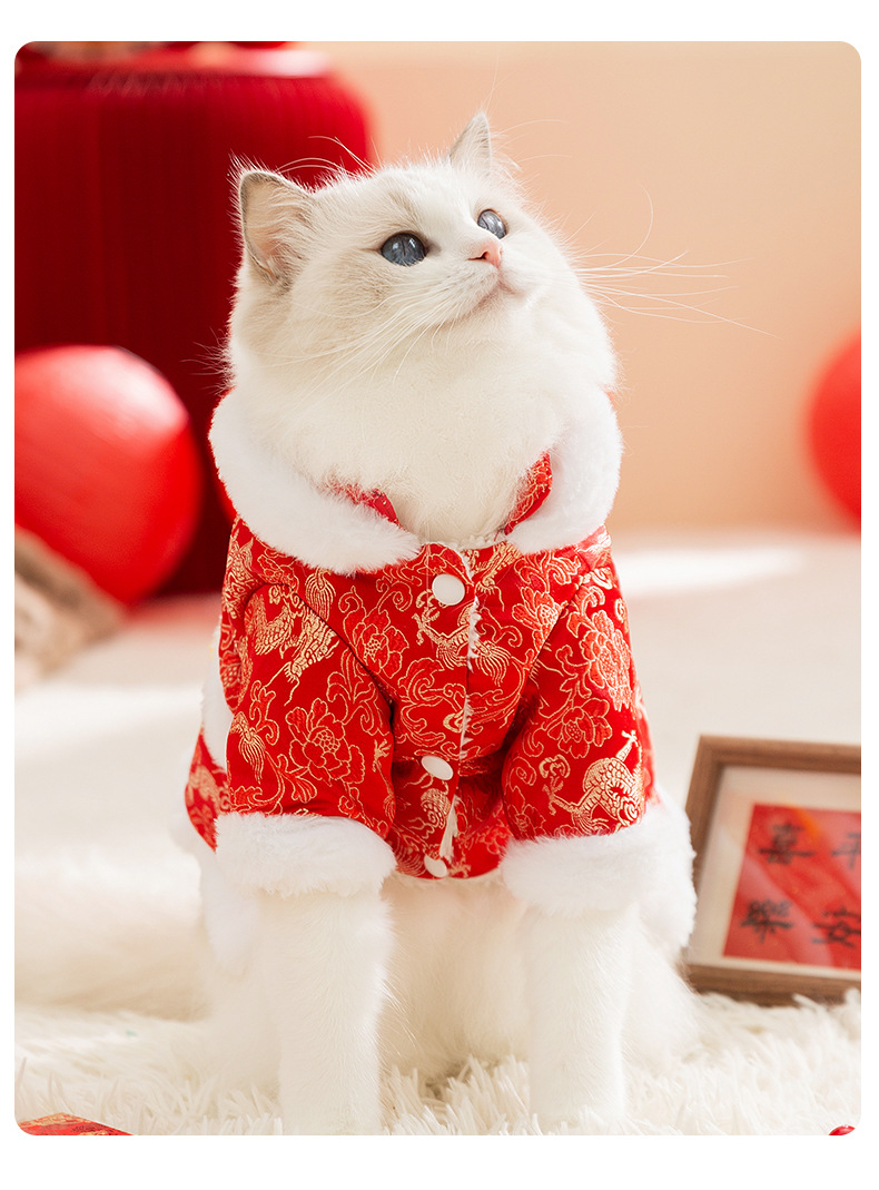고양이 가을과 겨울 중국 술 단추 면화 패딩 의류 스커트 미디어와 작은 개 신년 당나라 세트 애완 동물 고양이 옷스토어 가기