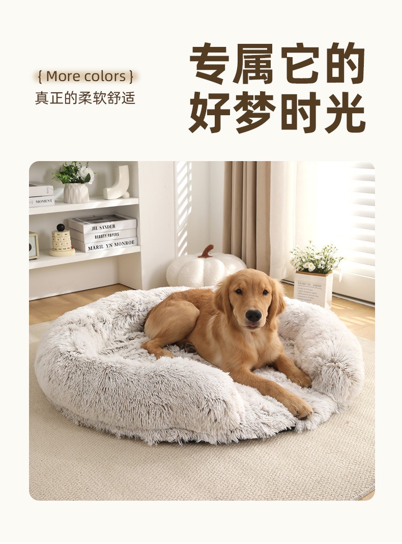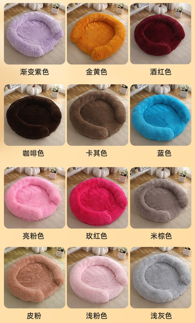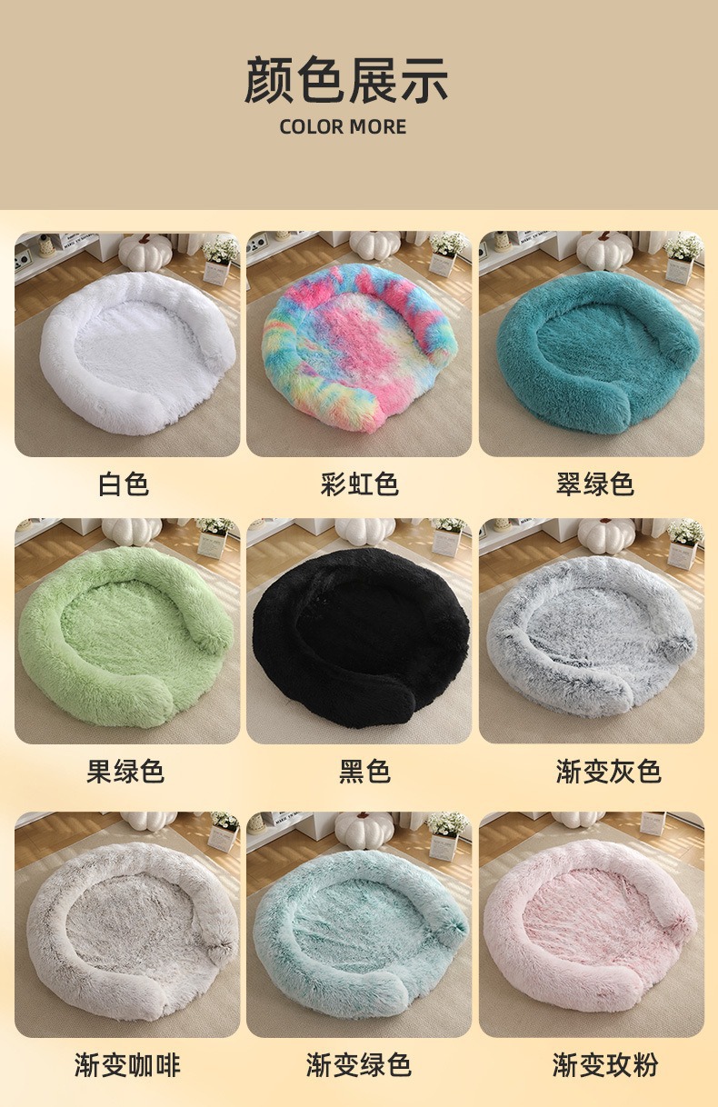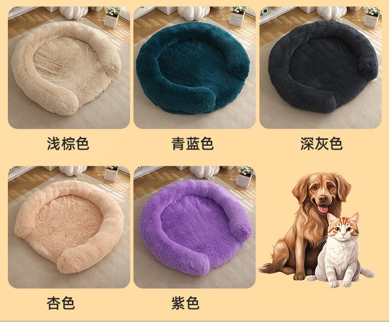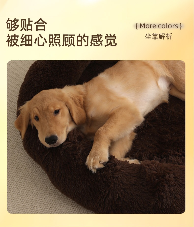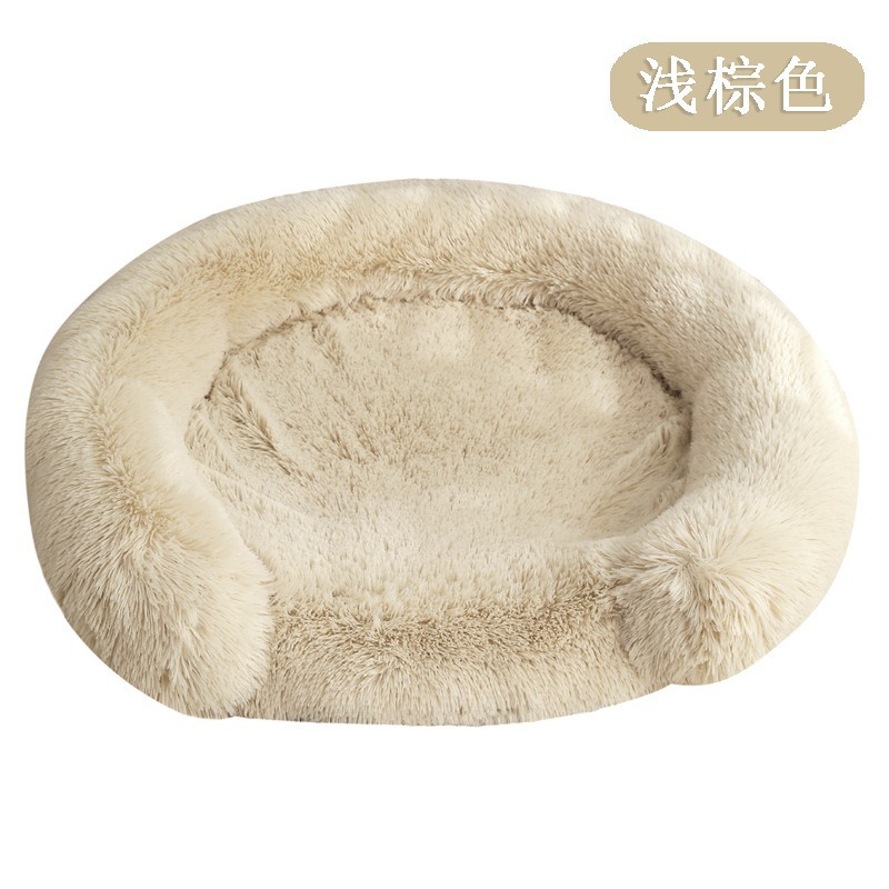 국경을 넘는 봉제 개 매트, 탈부착 및 세척 가능한 원형 개 침대, 사계절 따뜻한 애완 동물 둥지, C자형 팔걸이, 고양이와 개 소파