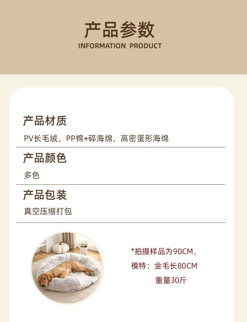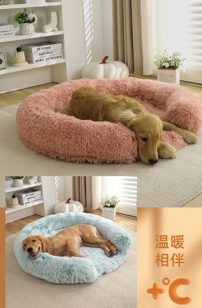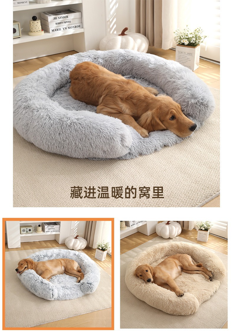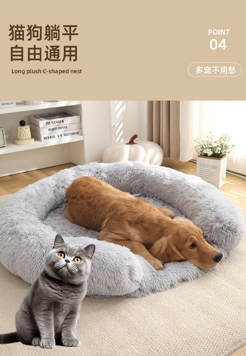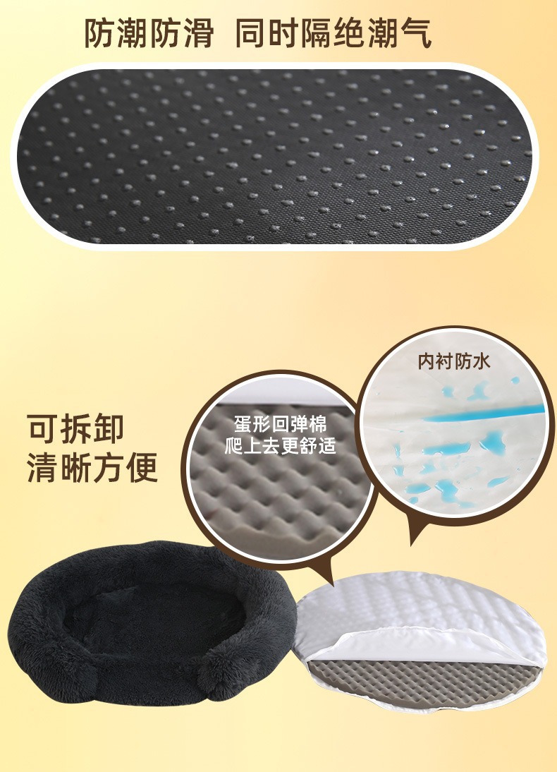 국경을 넘는 봉제 개 매트, 탈부착 및 세척 가능한 원형 개 침대, 사계절 따뜻한 애완 동물 둥지, C자형 팔걸이, 고양이와 개 소파